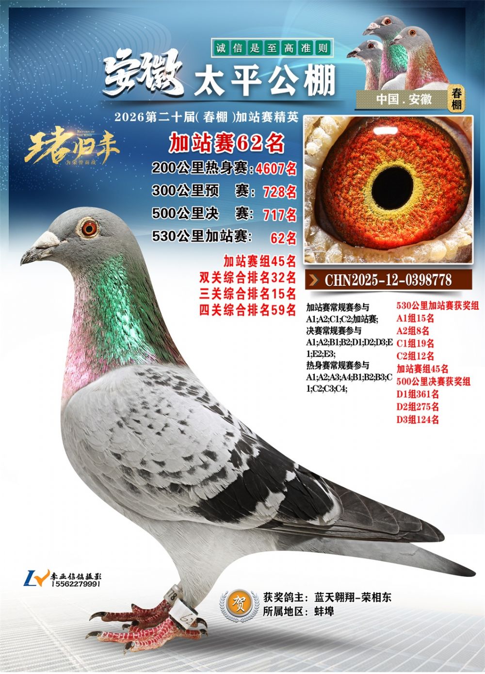 - 当前查看的拍卖鸽:安徽太平加站赛62名