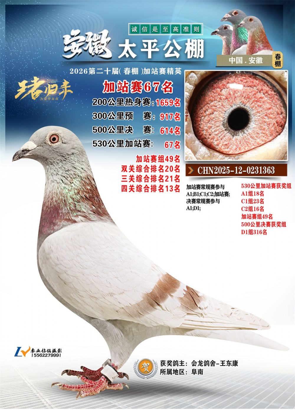- 当前查看的拍卖鸽:安徽太平加站赛67名