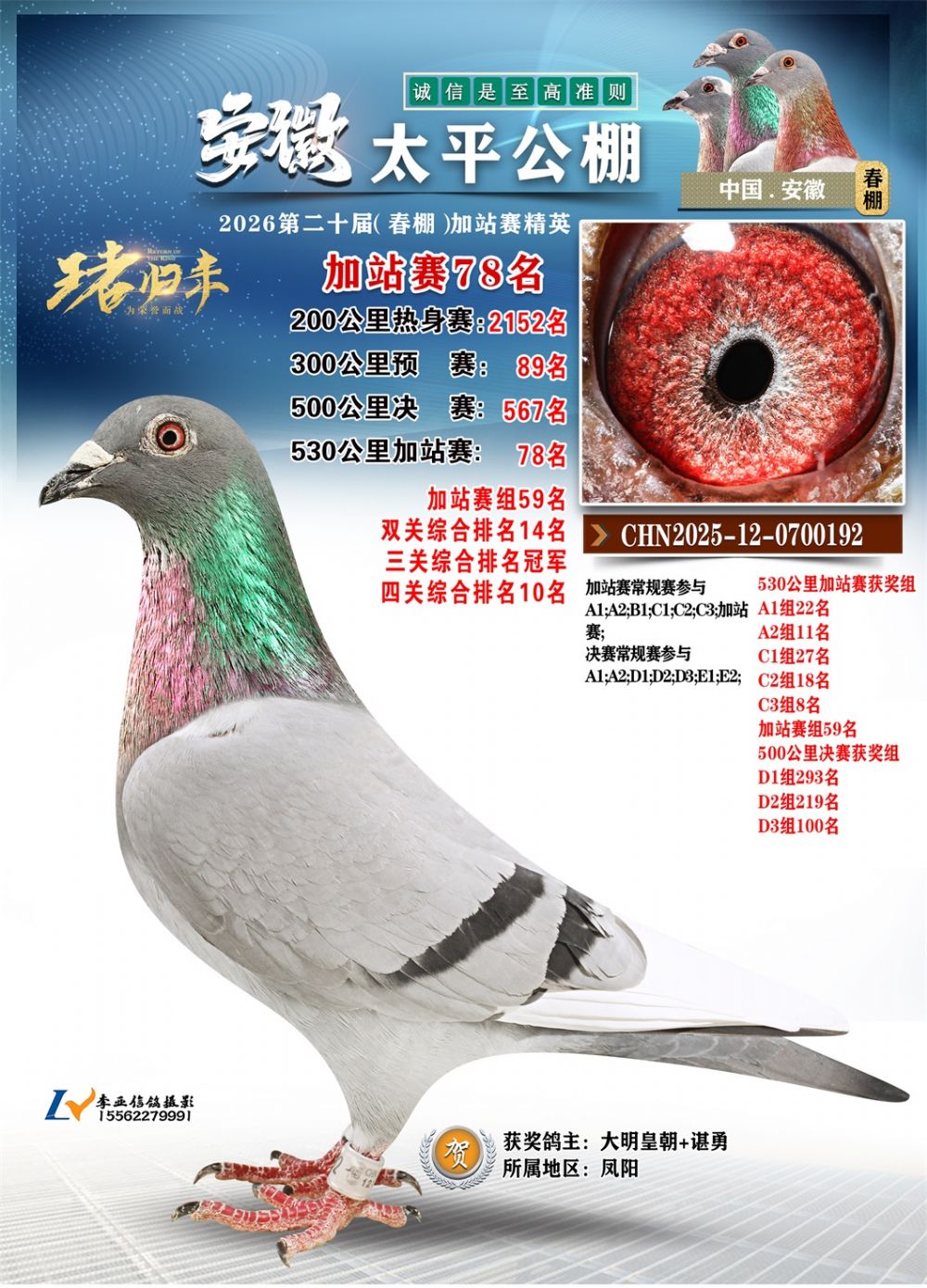 - 当前查看的拍卖鸽:安徽太平加站赛78名