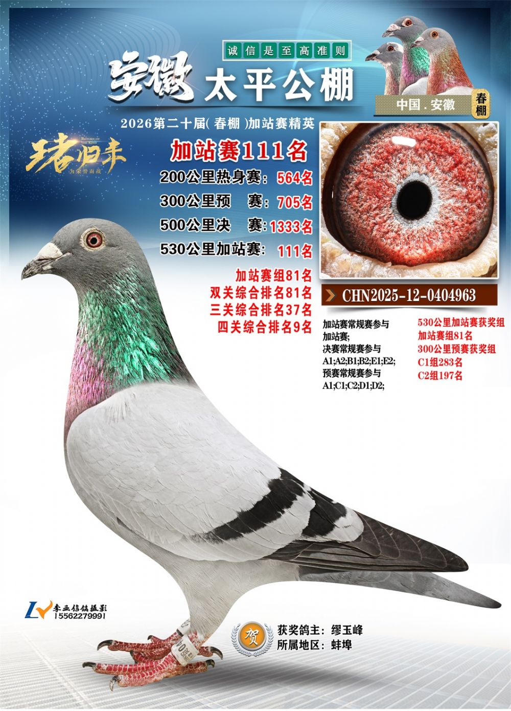 - 当前查看的拍卖鸽:安徽太平加站赛111名