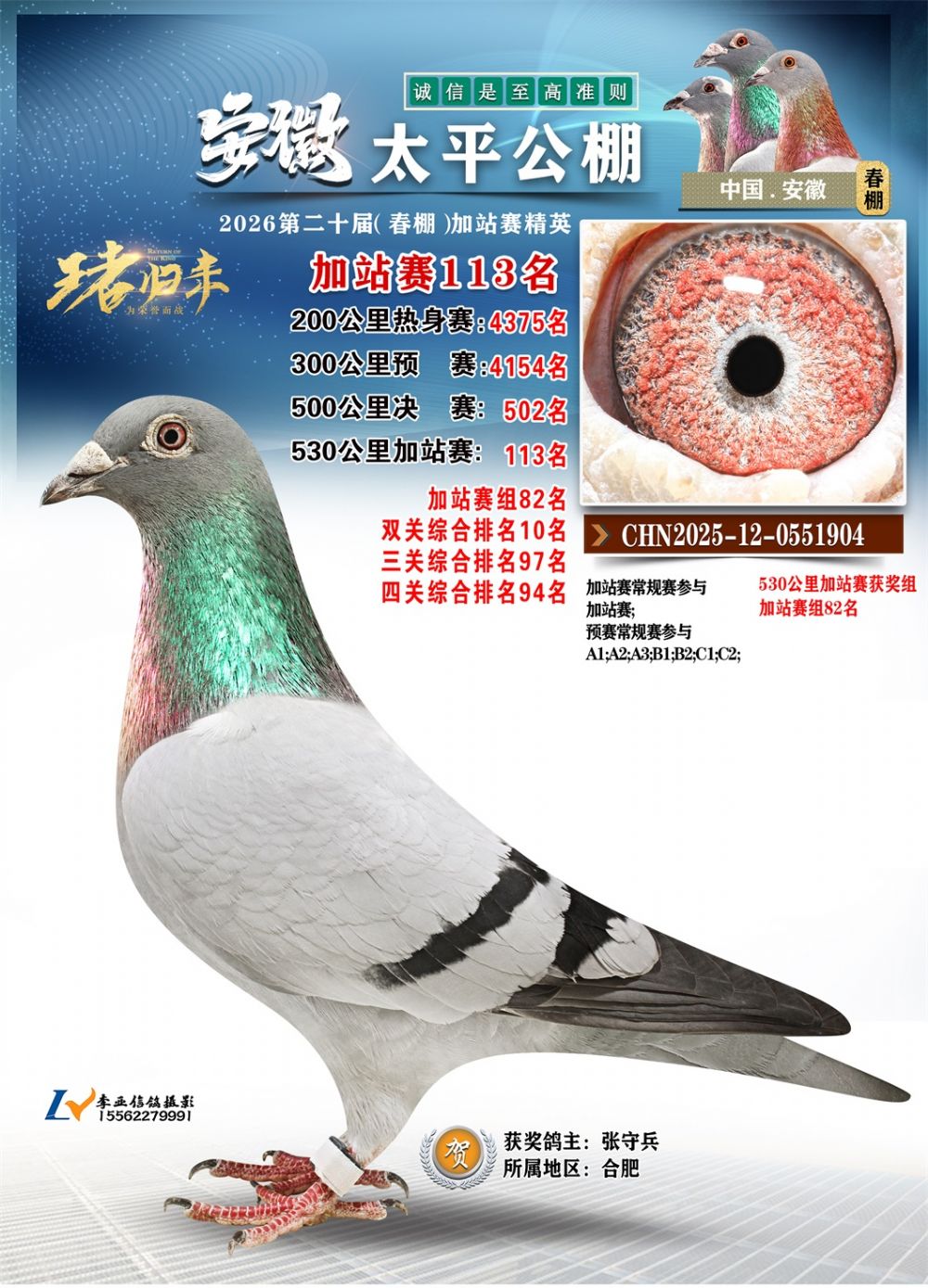- 当前查看的拍卖鸽:安徽太平加站赛113名