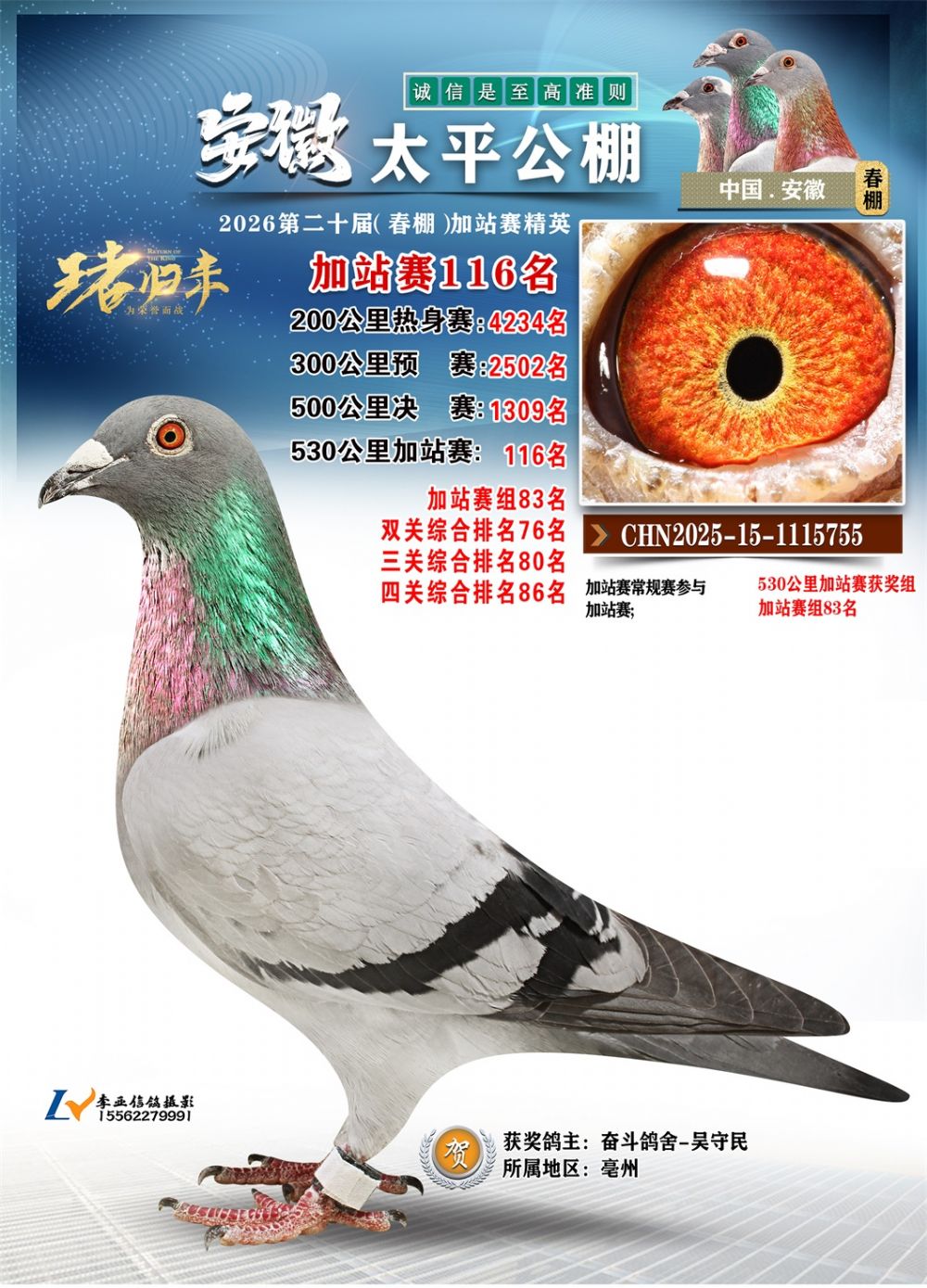 - 当前查看的拍卖鸽:安徽太平加站赛116名
