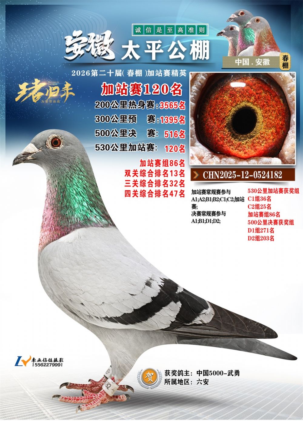 - 鸽主姓名:中国5000-武勇
