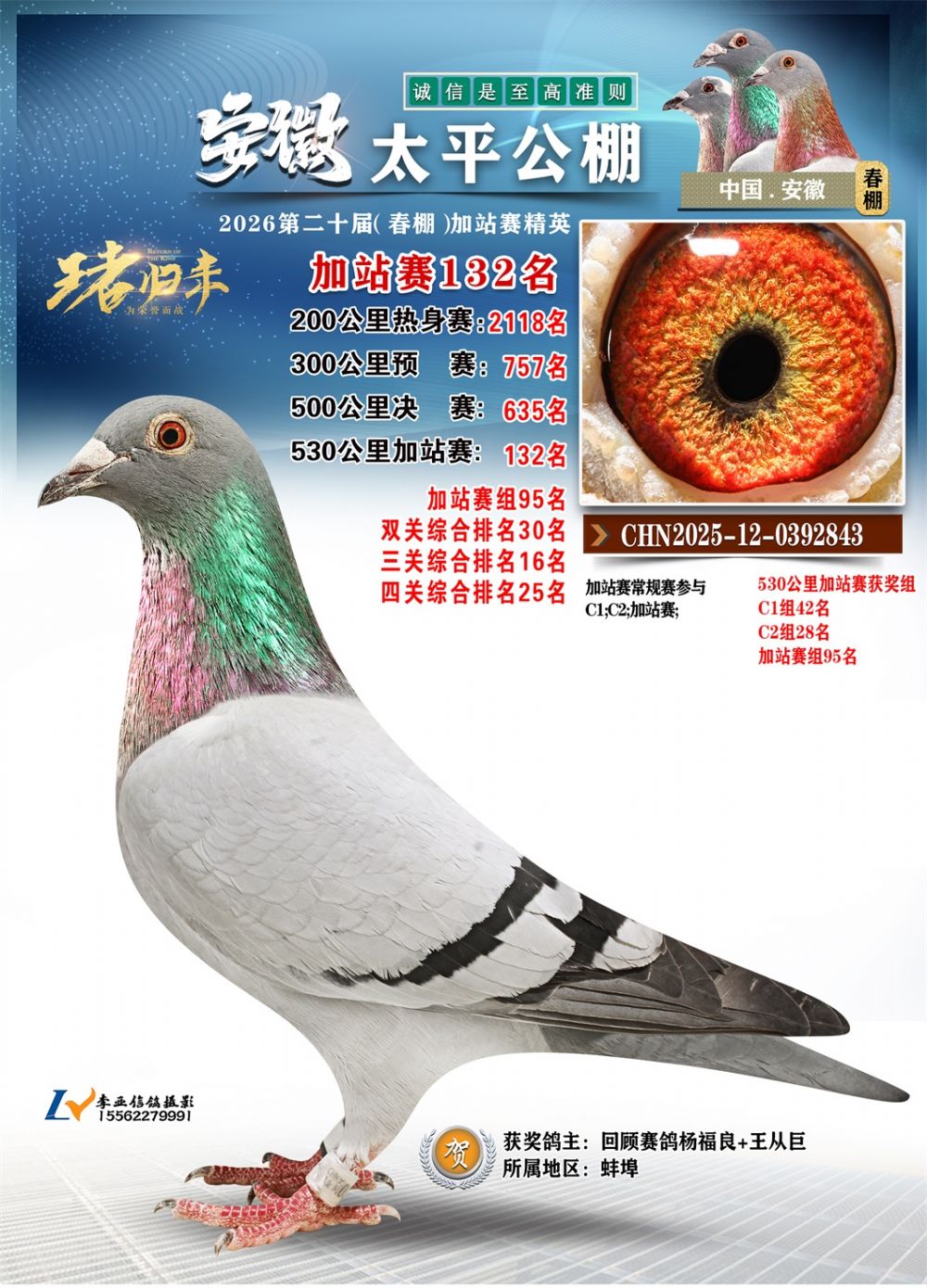 - 鸽主姓名:回顾赛鸽杨福良+王从巨