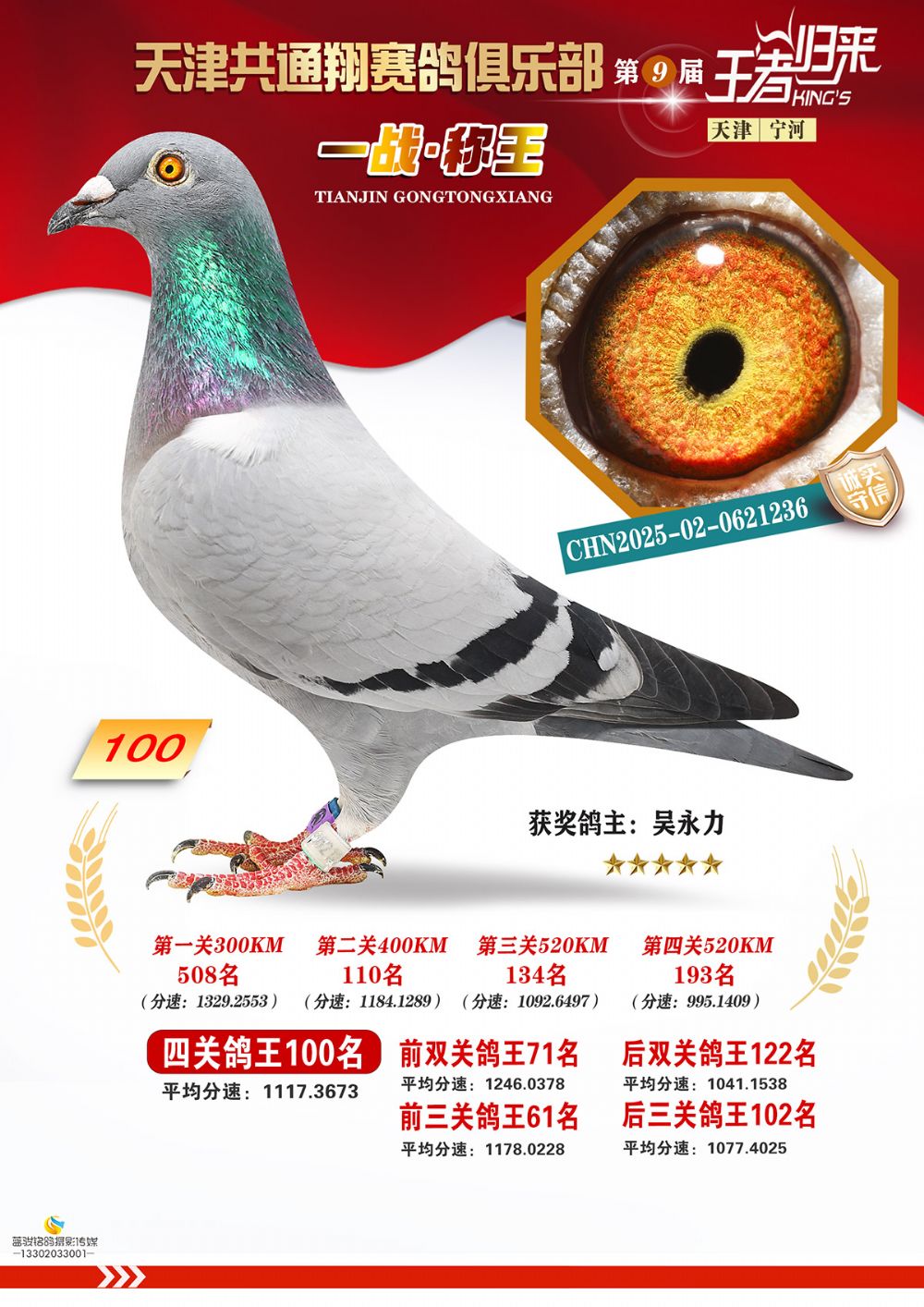 天津共通翔赛鸽俱乐部四关鸽王冠军—100名