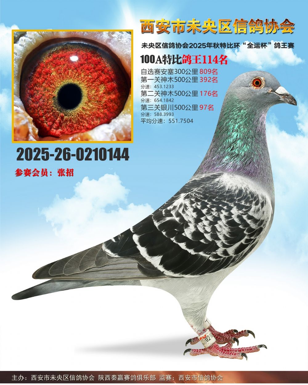 西安市未央区鸽会2025秋100A特比鸽王1—114名及五关鸽王11羽