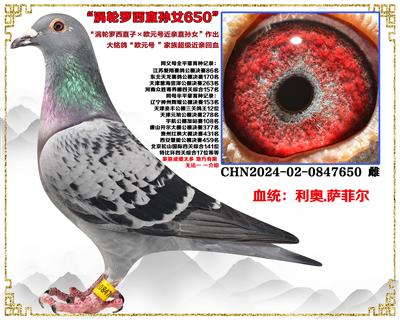 在刚刚结束的云南大理祥云彩云赛鸽公棚决赛,四川嘉兴鸽业-曹军先生荣获决赛第十名,此鸽父亲是夏拉肯小鬼当家直子“鬼斧神工”作出,母亲是嘉兴鸽业三大主力名血万德维根作育(本身贵州公棚15名)!2015年元月24日将在昆明举行的“分享成功3”拍卖会上将会有嘉兴名鸽“鬼斧神工”直接子代三羽,孙代一羽。以及万德维根原舍嘉兴鸽业三大主力之一“魂牵梦绕”直接子代三羽。