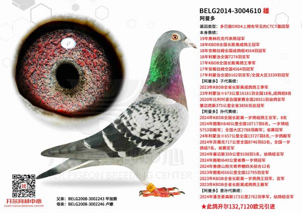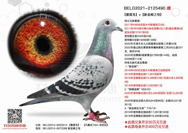 090母亲出自奶酪,源于新金姆家族的多重近亲,由新金姆祖父塞雷克与新金姆之母作育,25秋赛奶酪血系在云贵地区表现亮眼,斩获红枫大棚第二关冠军、大理巍山达人加站赛冠军、天南铜都小棚双关鸽王18名等。