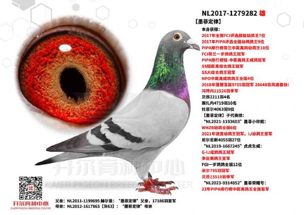 值得一提的是,50名母亲同时是威廉·迪布恩当家种雄墨菲定律的双重近亲回血,是墨菲定律与WHZB幼鸽鸽王全国亚军凤凰号,以及墨菲定律与PIPA排行榜鸽王冠军墨菲千禧雌的搭档组合,阿曼多与墨菲定律两大传奇血脉的鼎力加持,助力鸽友马占虎成功拿下恒通决赛50名。