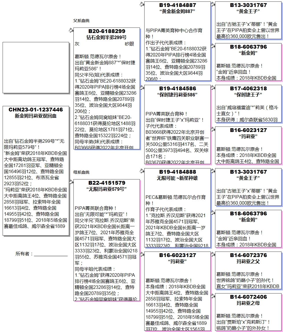 父亲BE20-6188299【黄金新金姆/保时捷玛莉亚】直子。母亲BE22-4151579【无限可能/玛莉亚】直女。
