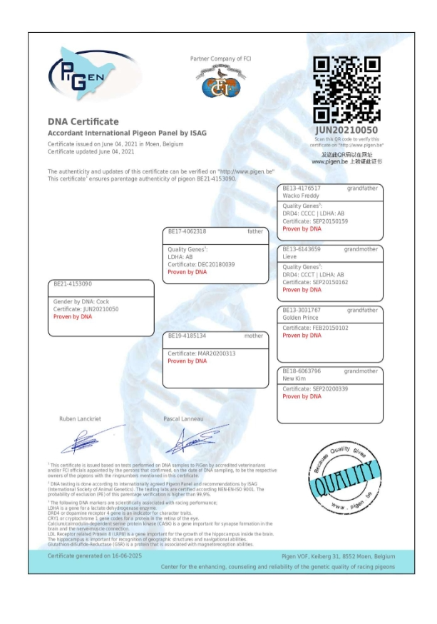 | 父亲B17-4062318【保时捷王子】。母亲B19-4185134【黄金王子·新金姆】134 |