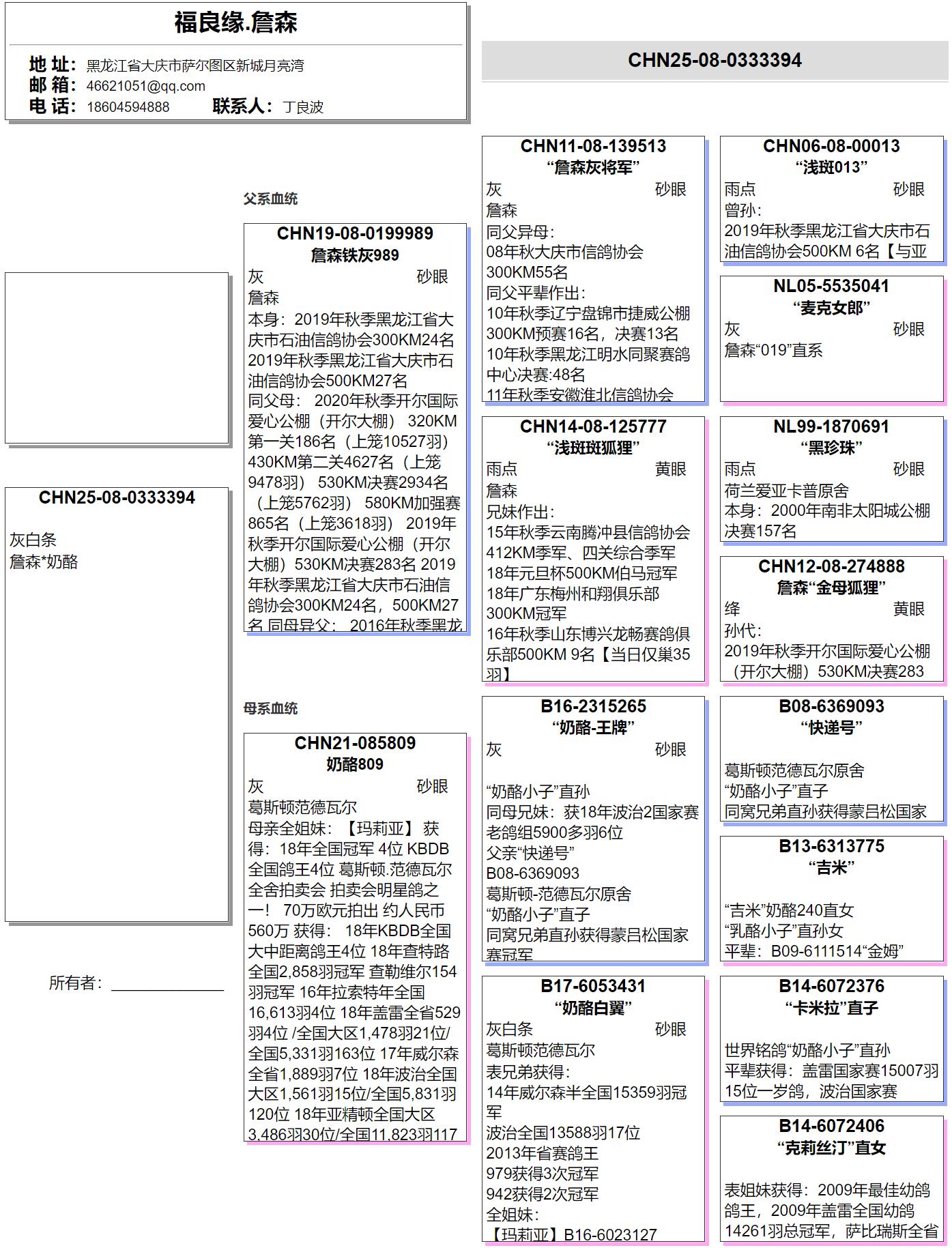 曾外祖母:B14-6072406 葛斯顿招牌种鸽“克莉丝汀”直女 |