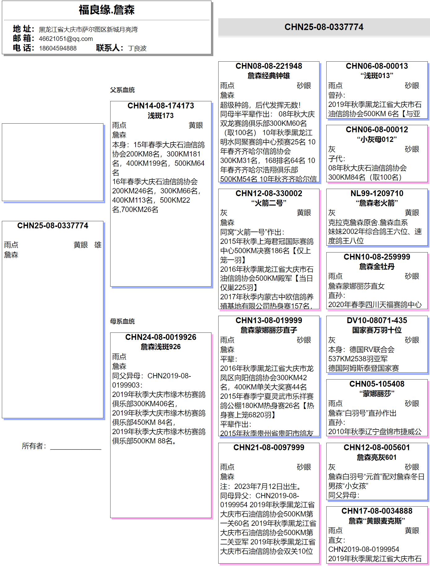 曾外祖父:“国家赛万羽十位”DV08071-10-435