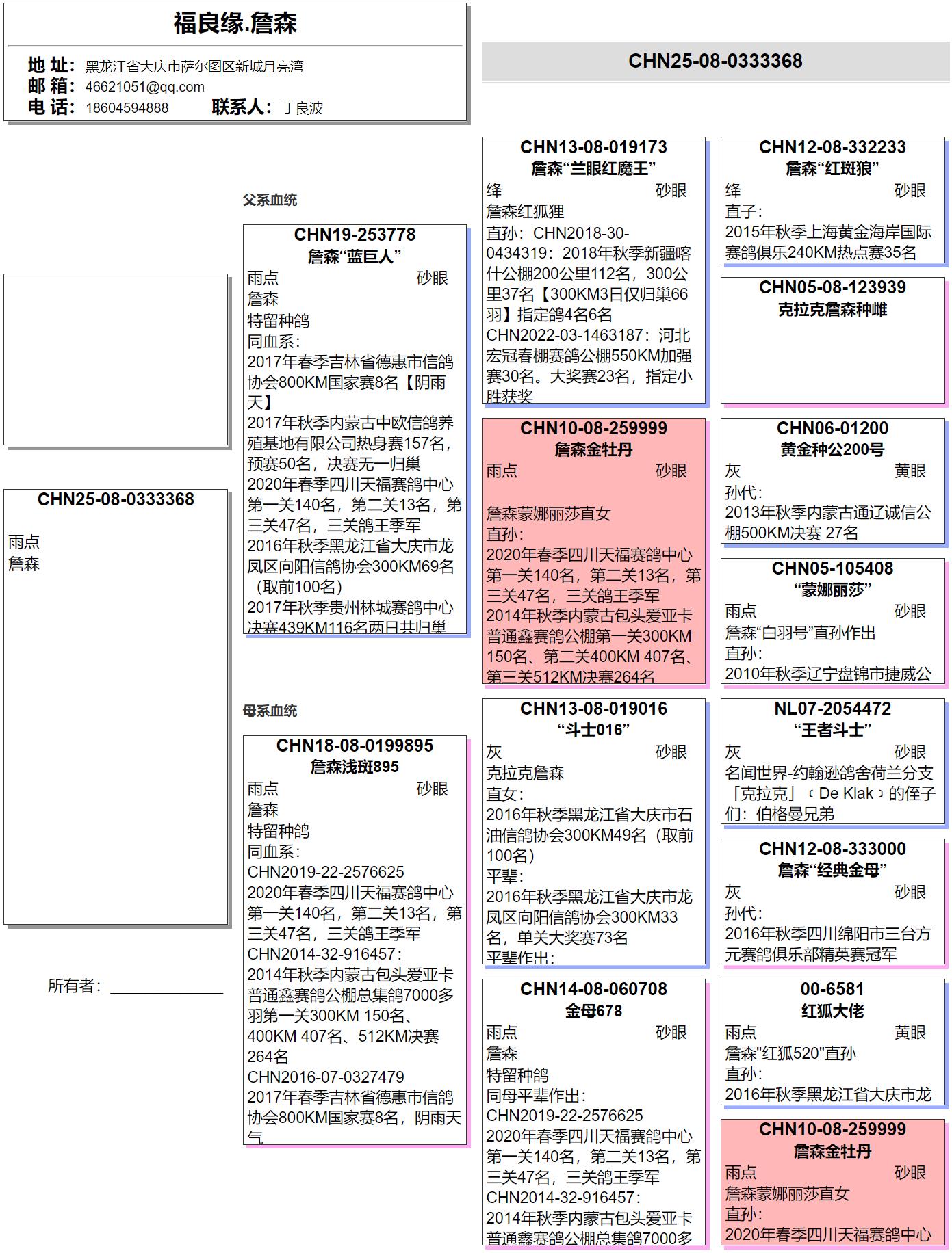 曾外祖母:“金牡丹”CHN2010-08-259999 斑砂 白羽号回血 |