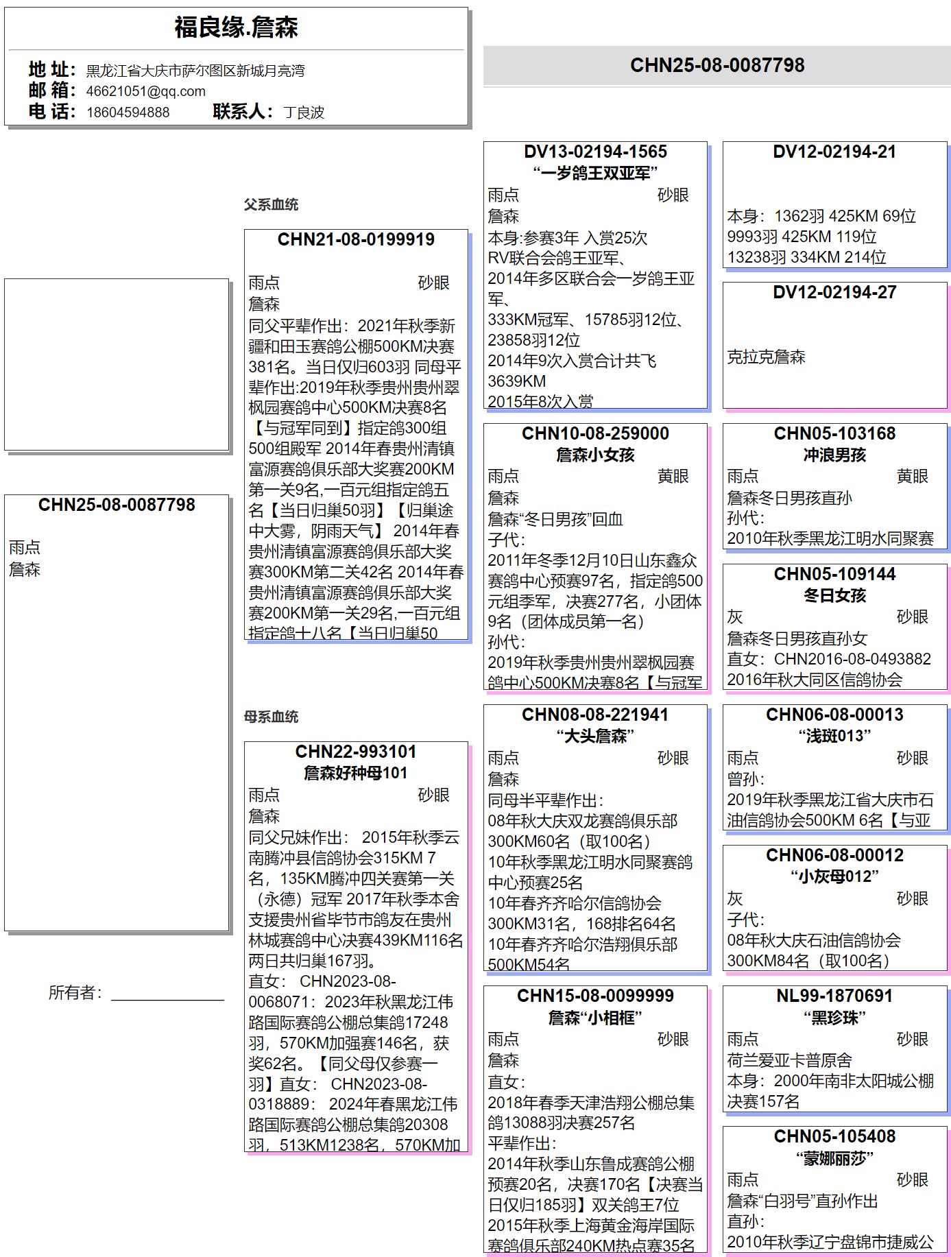 詹森鸽王双亚军*詹森019 |