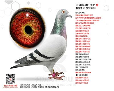 NL2024-8413005 同父兄妹赛绩: 22年SS速度幼鸽鸽王冠军 22年PIPA排行榜速度幼鸽鸽王全国9位 22年PIPA排行榜幼鸽鸽王全国10位 22年NPO幼鸽鸽王全国15位 基耶夫兰27342羽季军 尼尔尼斯25125羽13名 亚拉斯12930羽11名 艾索顿10081羽10名 莫伦21811羽27名 蓬图瓦斯11052羽43名 莫斯高伦9229羽