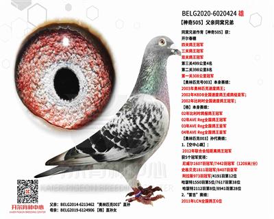 BELG2020-6020424 同窝兄弟作育【神奇505】获: 开尔春棚 四关鸽王冠军 三关鸽王冠军 双关鸽王冠军 第三关499公里4名 第二关398公里8名 第一关308公里冠军