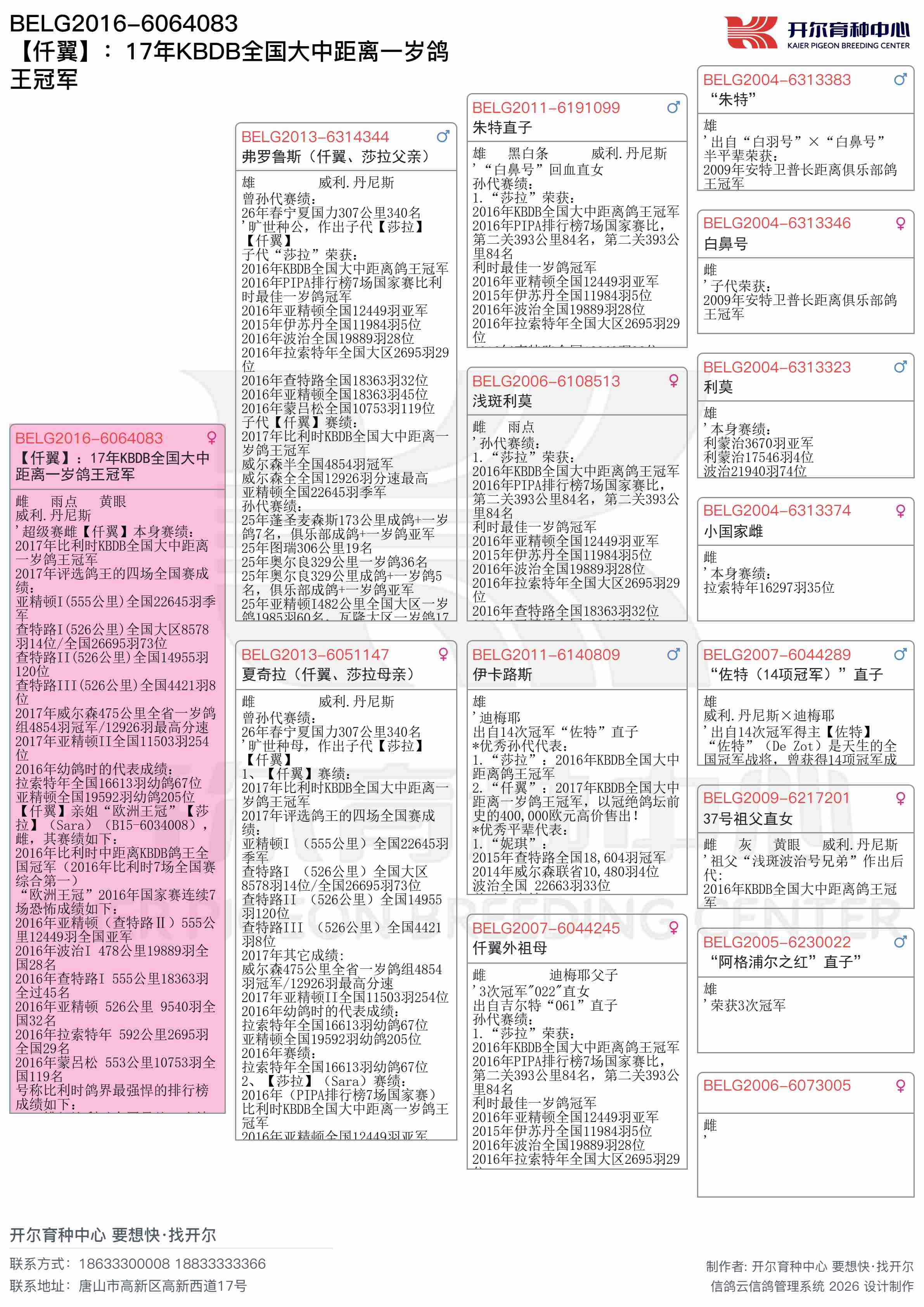 ● 本鸽: BELG2016-6064083 【仟翼】:17年KBDB全国大中距离一岁鸽王冠军