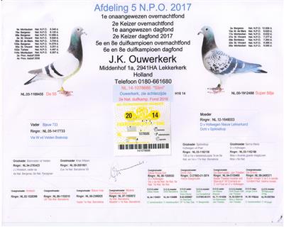 ⑴直女“安妮特”NL02-1660808获:05年巴塞罗那1200公里7491羽全国冠军(2300羽雌组冠军),25815羽国际亚军(7023羽雌组亚军)
