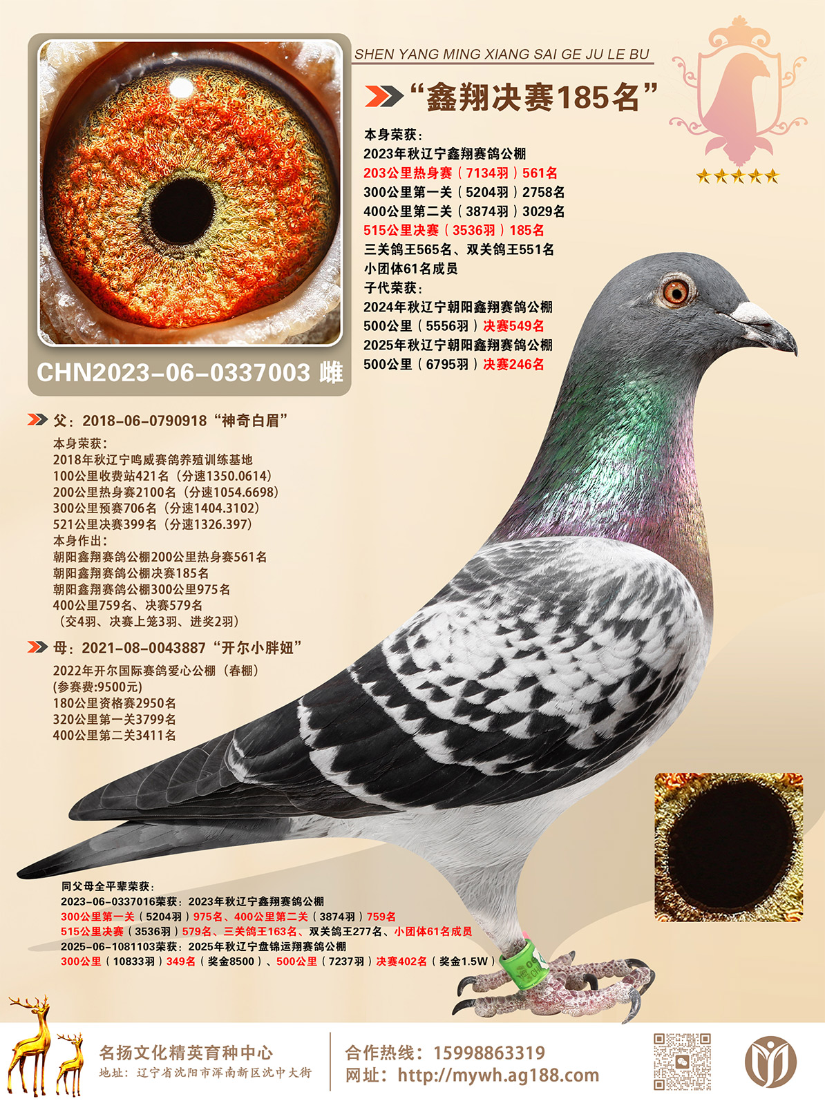 东北天龙鸽苑-“强盗号”、“幽灵”家族血系“家族获奖金千万”