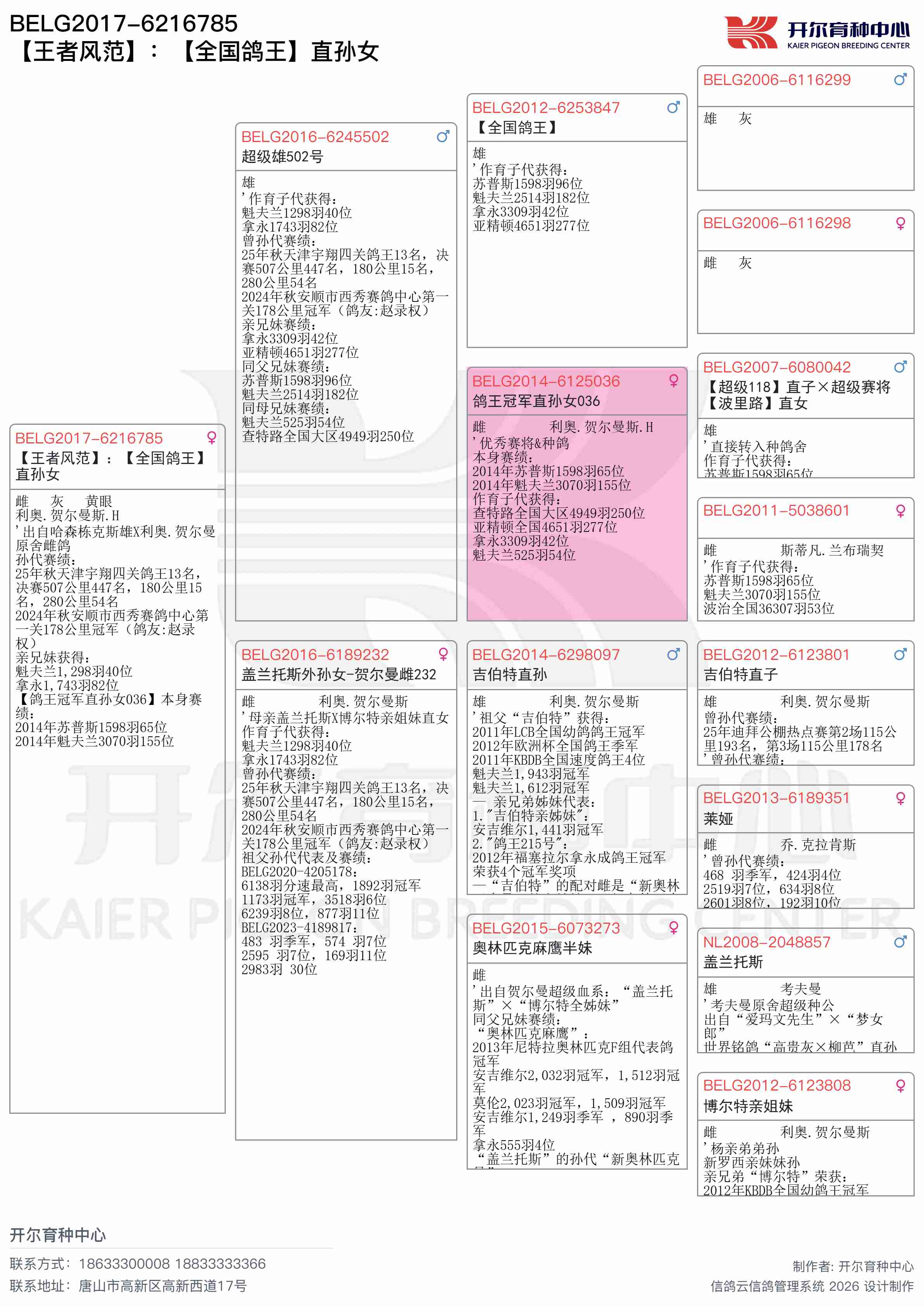 ● 本鸽: BELG2017-6216785 【王者风范】:【全国鸽王】直孙女