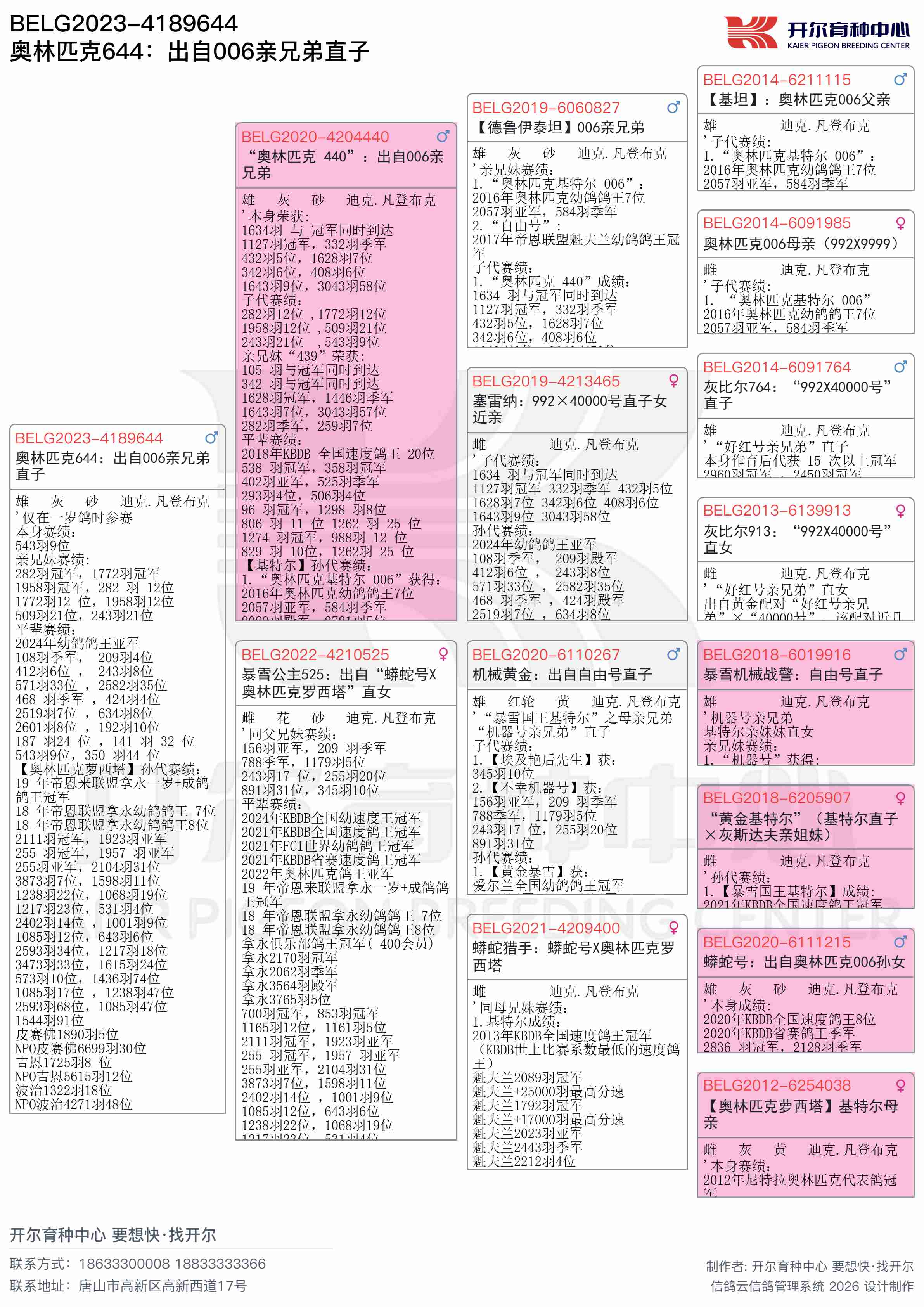 ● 本鸽: BELG2023-4189644 奥林匹克644:出自006亲兄弟直子