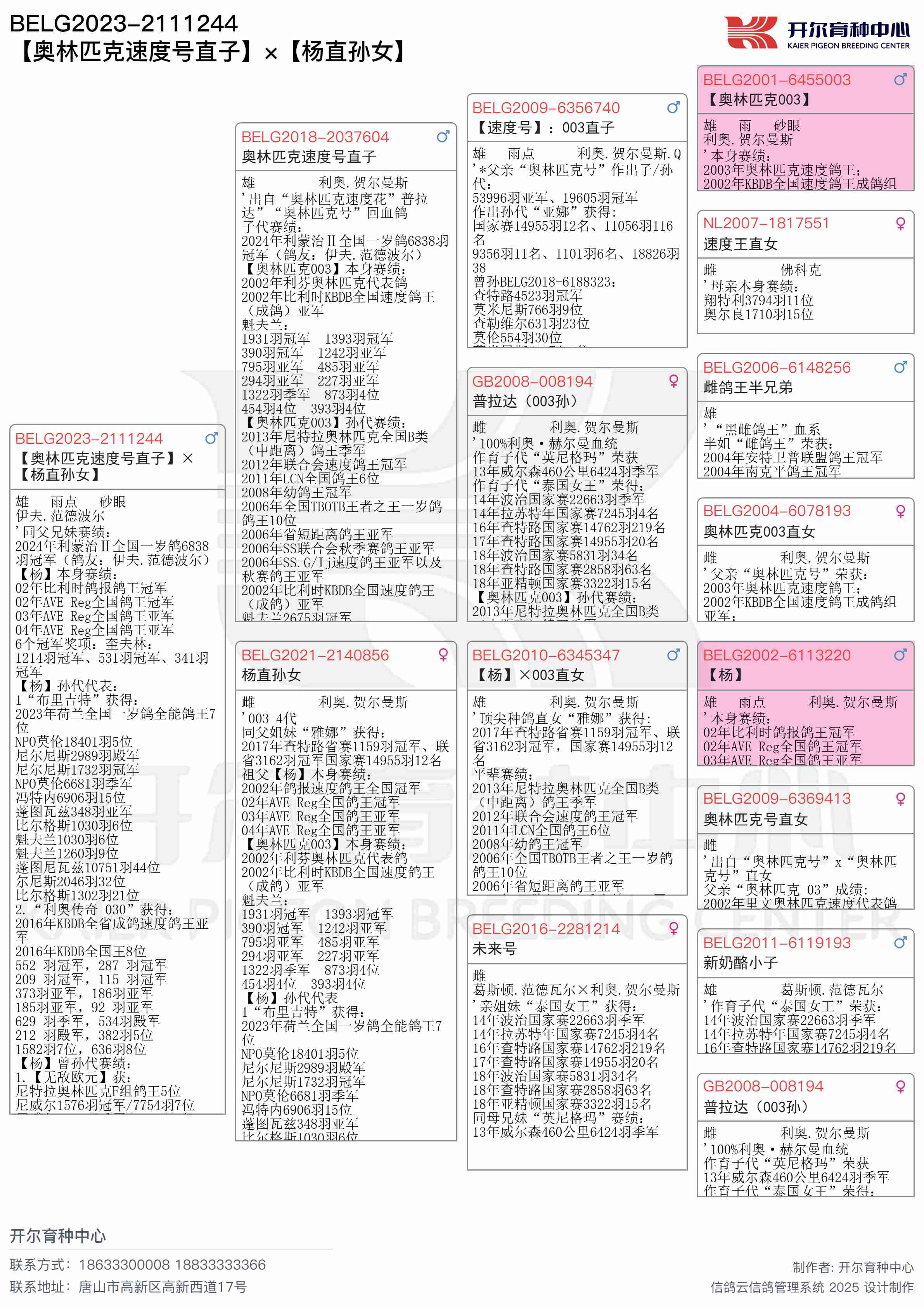 ● 本鸽: BELG2023-2111244 【奥林匹克速度号直子】×【杨直孙女】