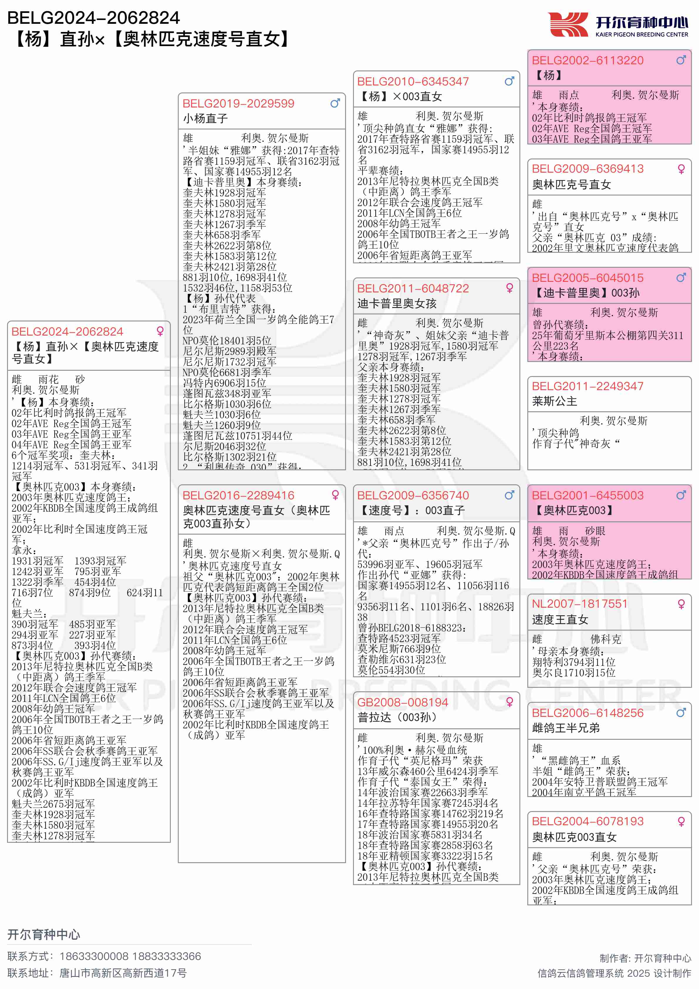 ● 母亲: BELG2016-2289416 奥林匹克速度号直女(奥林匹克003直孙女)