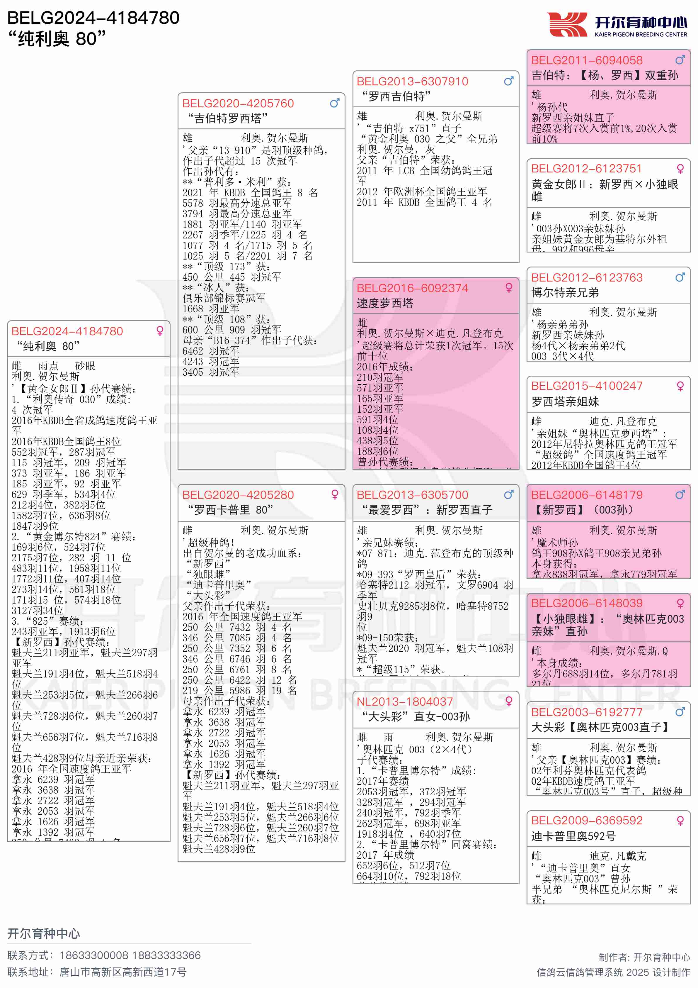 ● 本鸽: BELG2024-4184780 “纯利奥 80”