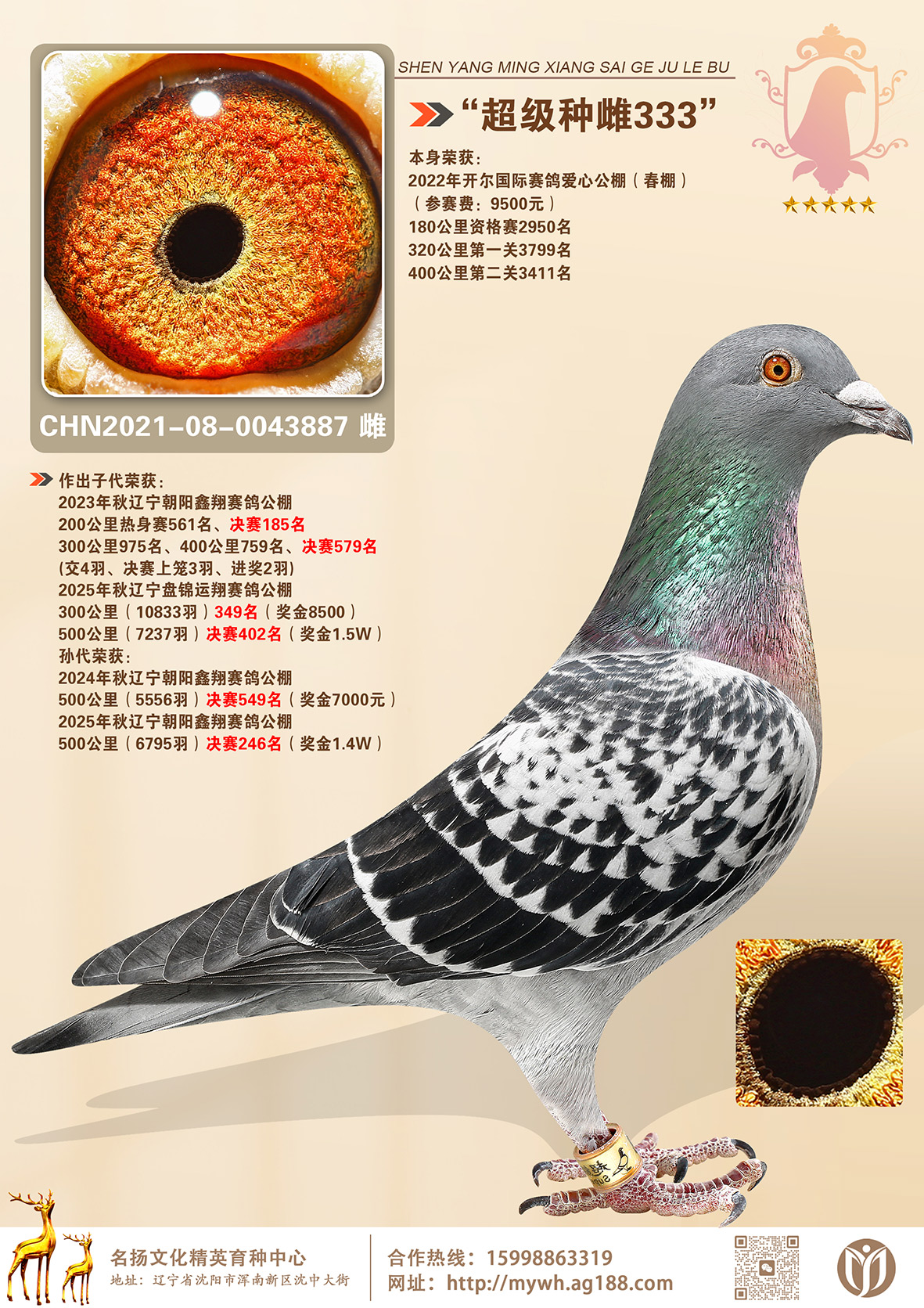 顶级赛鸽!德国RV 五月鸽王亚军.两次季军出自“顶级种鸽 飓风 487”x“超级鸽王 274 直女”