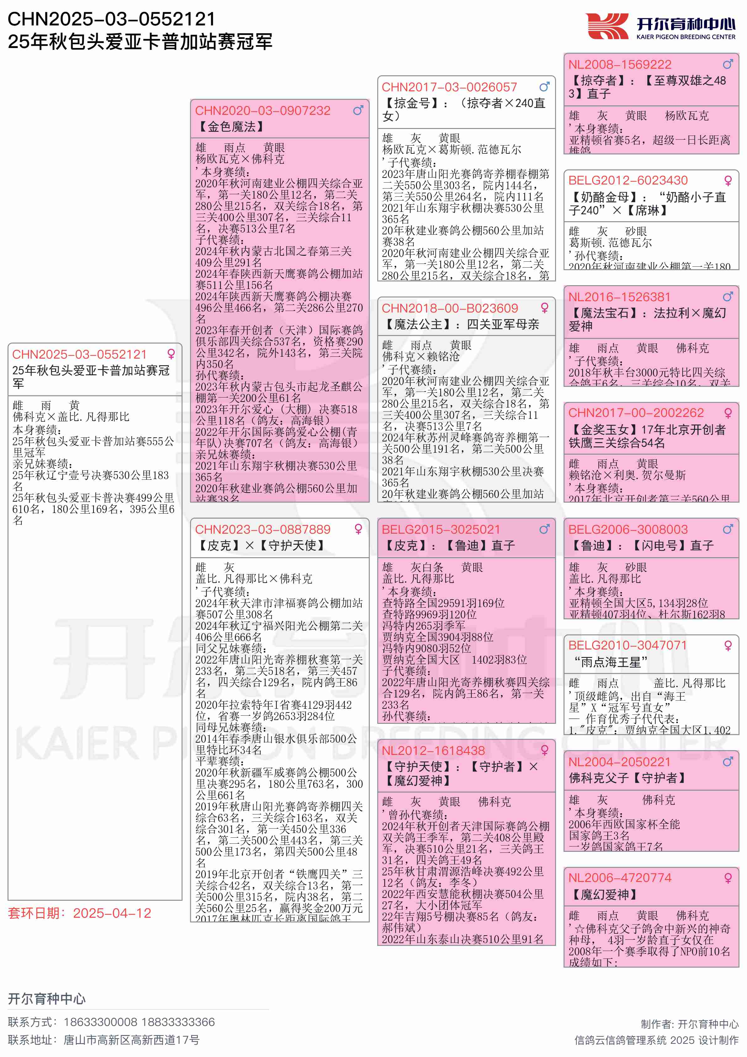 ● 本鸽: CHN2025-03-0552121 25年秋包头爱亚卡普加站赛冠军