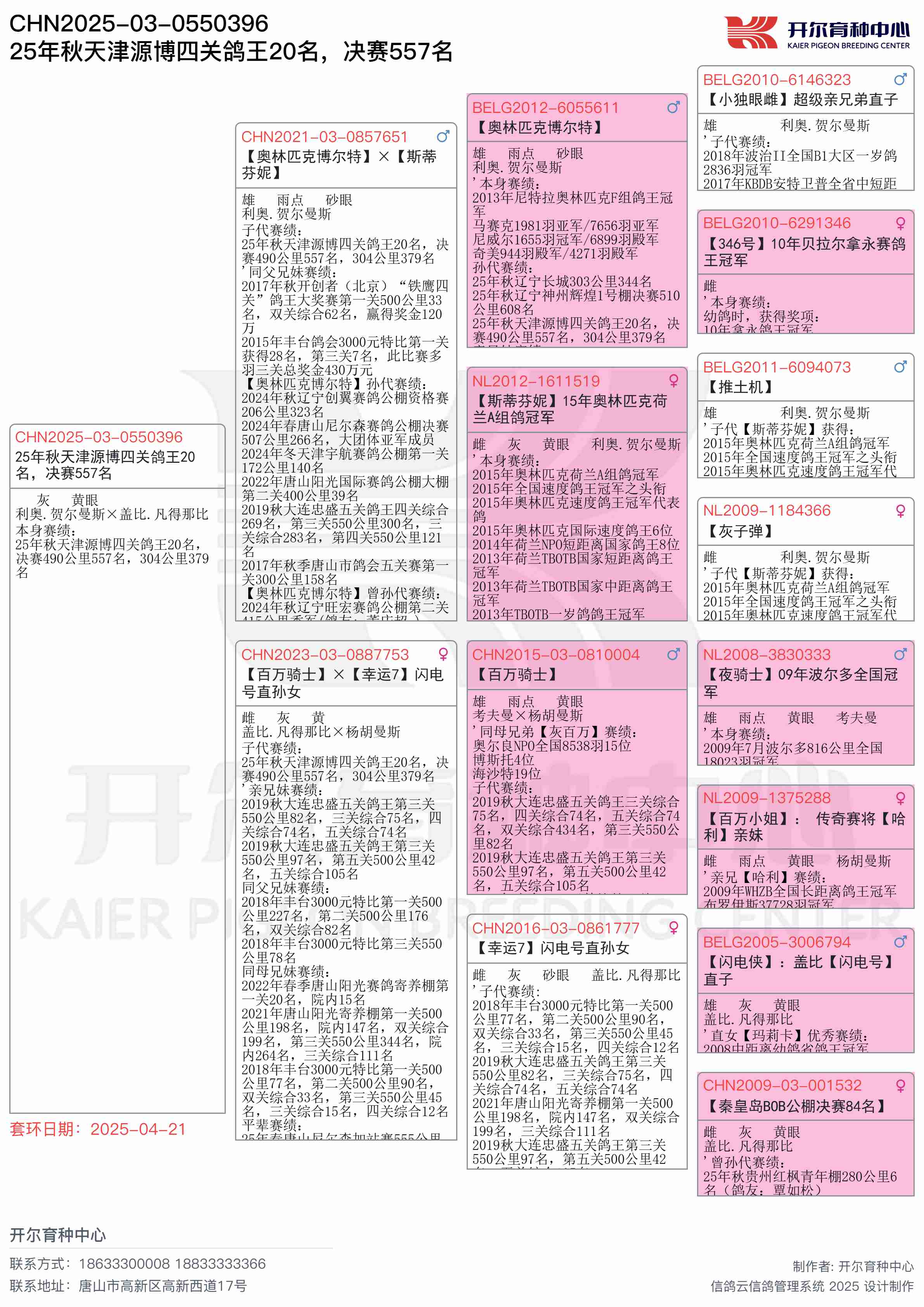 ● 本鸽: CHN2025-03-0550396 25年秋天津源博四关鸽王20名,决赛557名