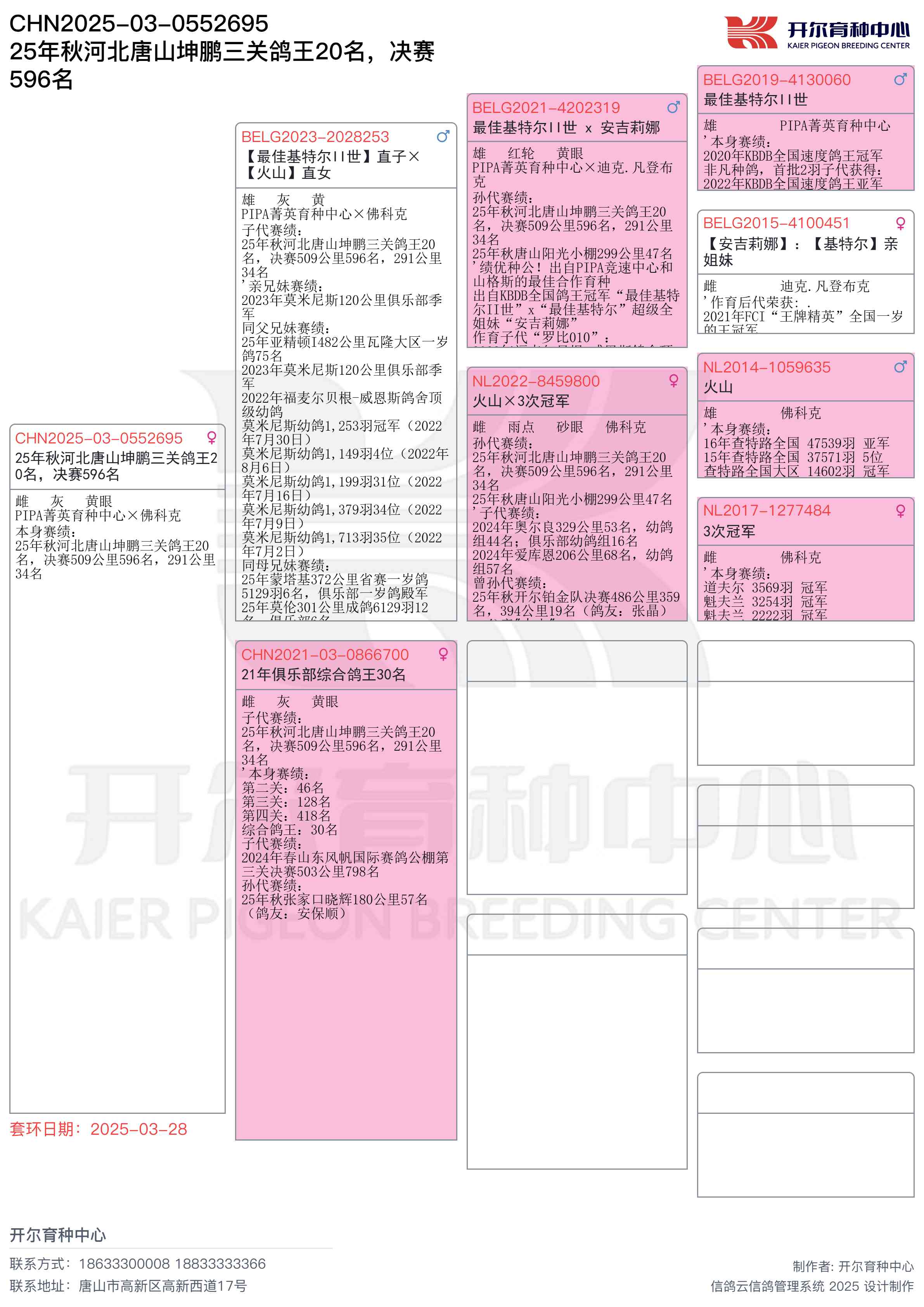 ● 本鸽: CHN2025-03-0552695 25年秋河北唐山坤鹏三关鸽王20名,决赛596名