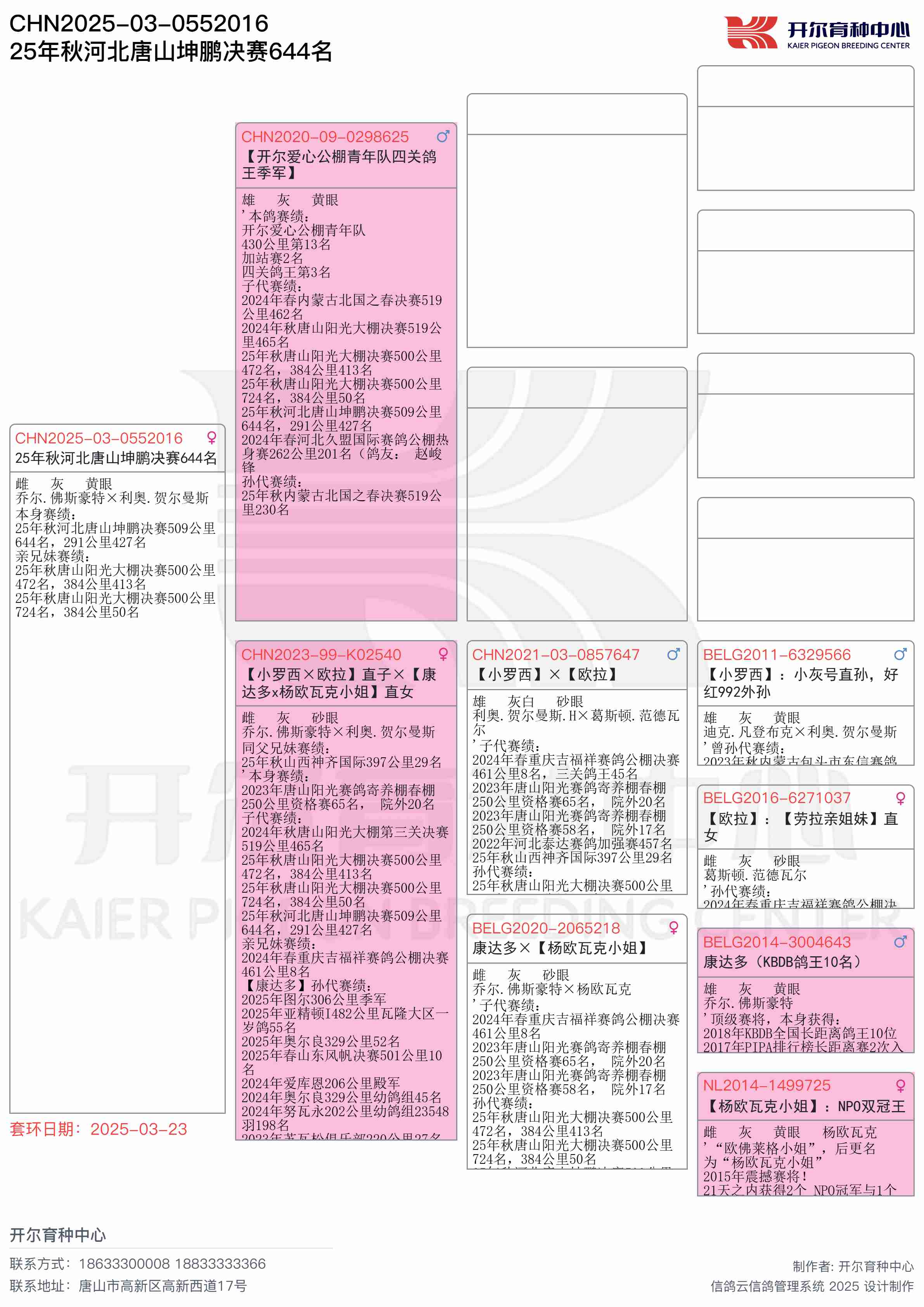 ● 本鸽: CHN2025-03-0552016 25年秋河北唐山坤鹏决赛644名