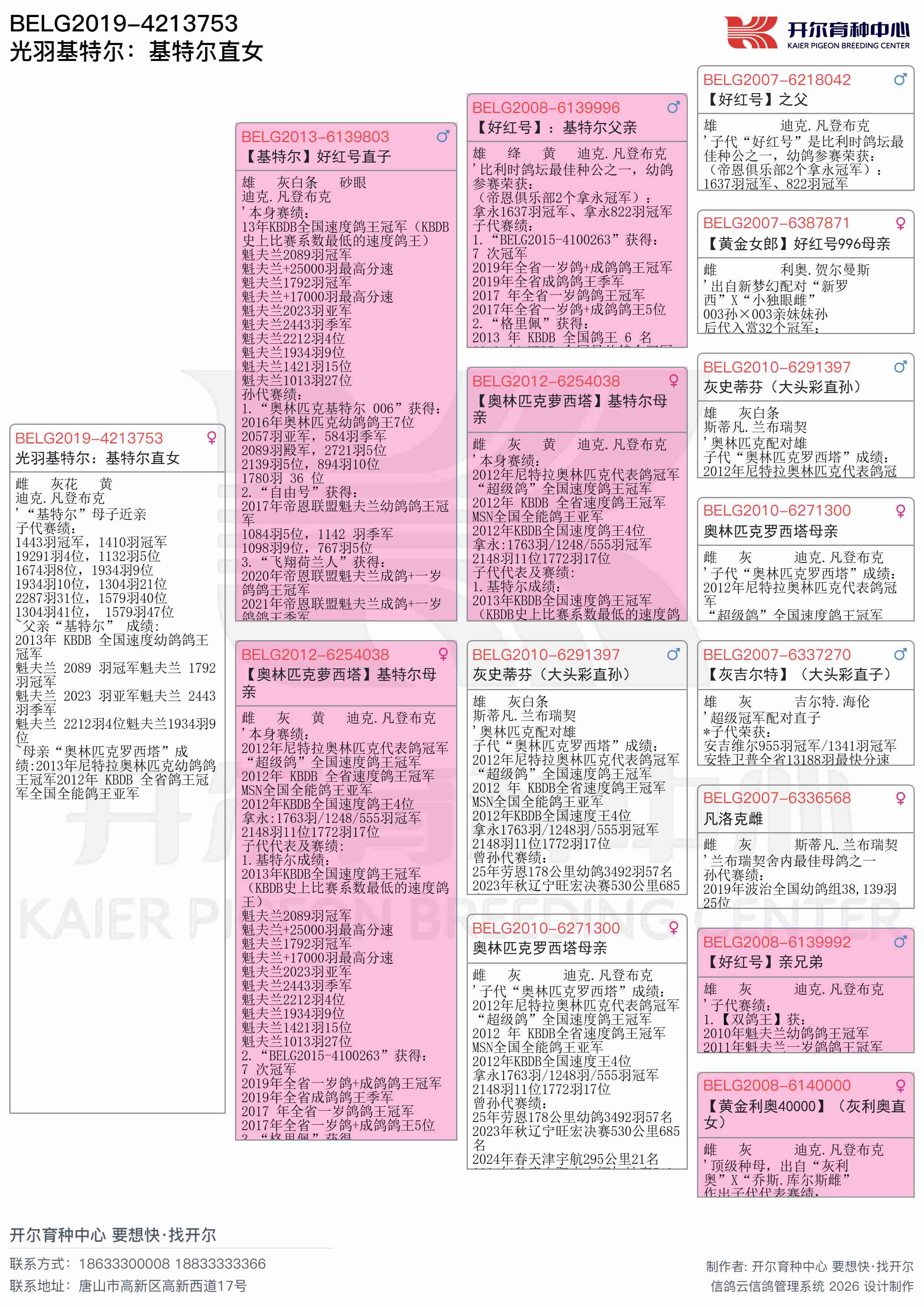 ● 本鸽: BELG2019-4213753 光羽基特尔:基特尔直女