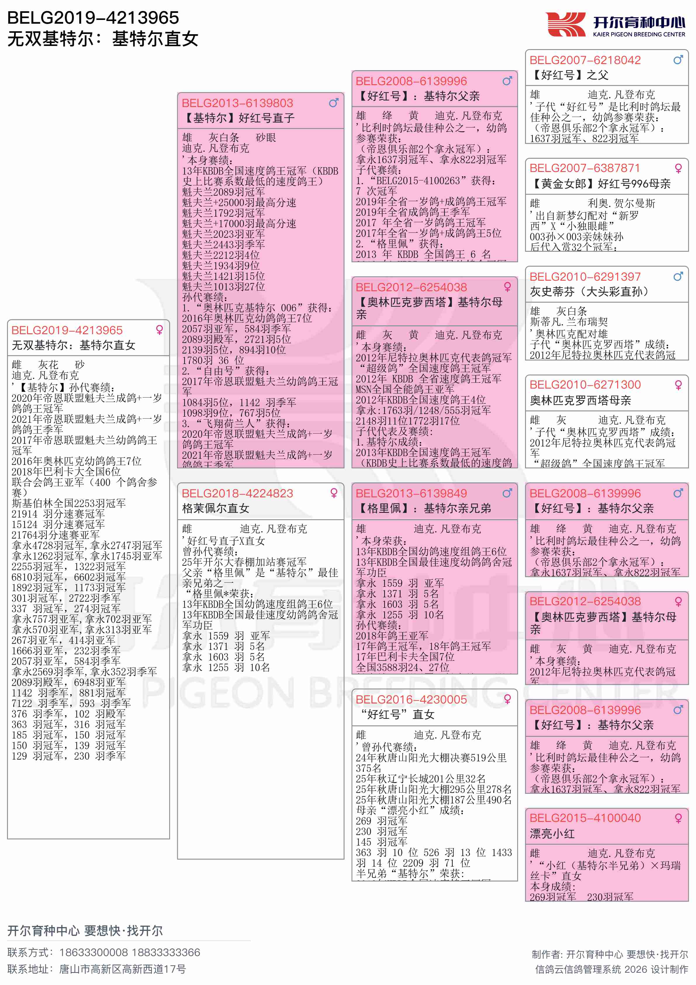 ● 本鸽: BELG2019-4213965 无双基特尔:基特尔直女