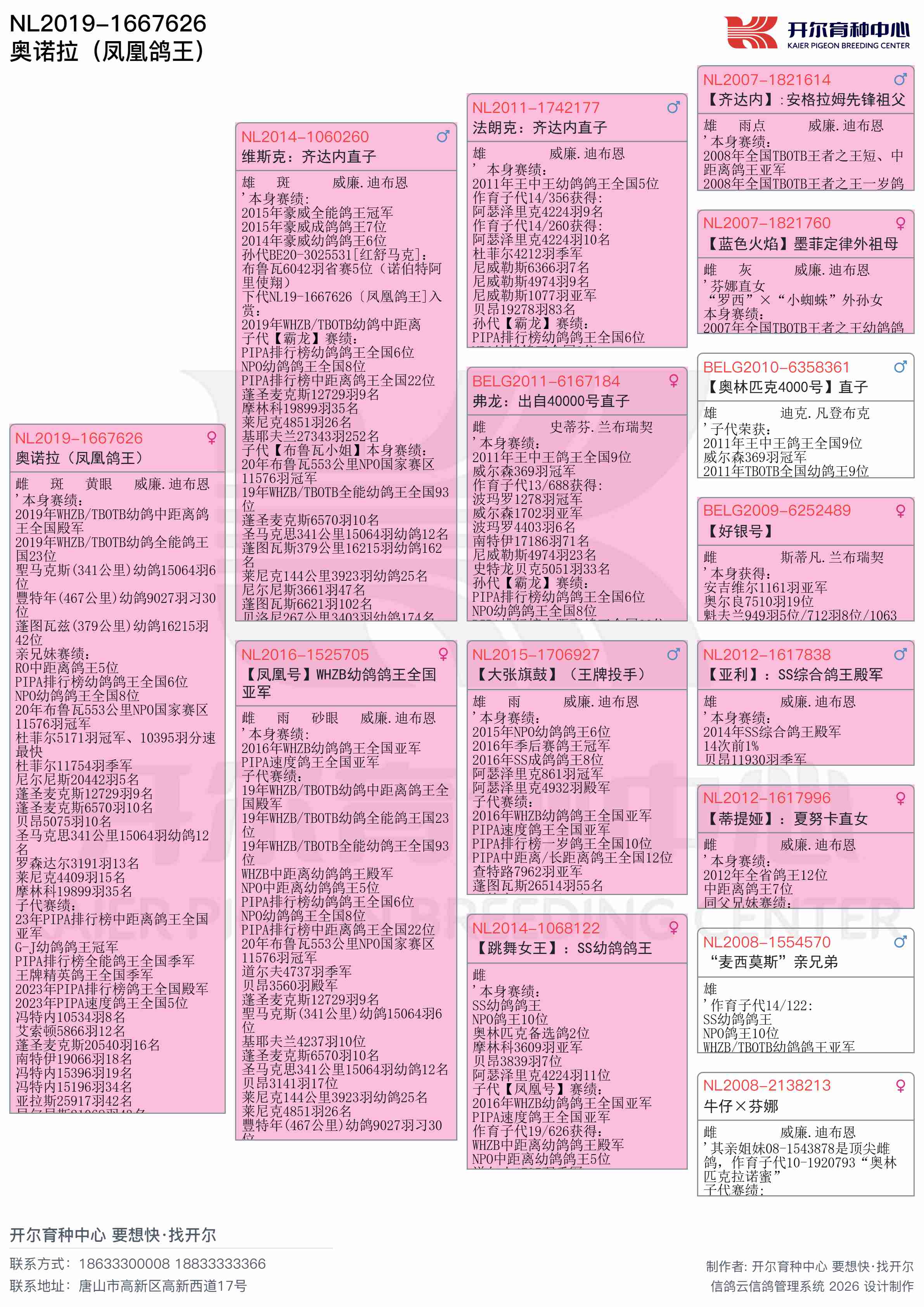 ● 本鸽: NL2019-1667626 奥诺拉(凤凰鸽王)