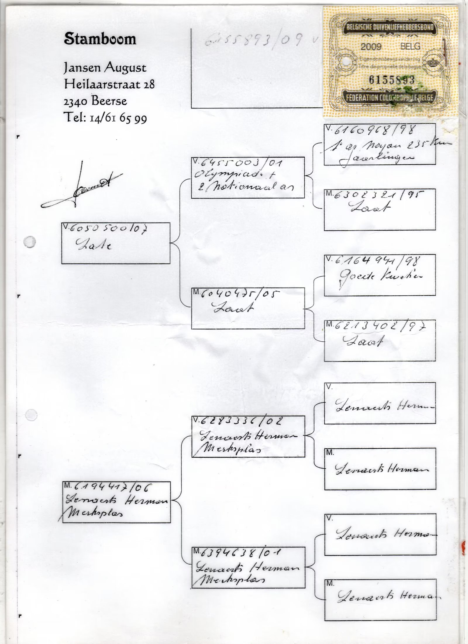 500公里季军(集鸽1000羽)、7名、22名;500公里7名