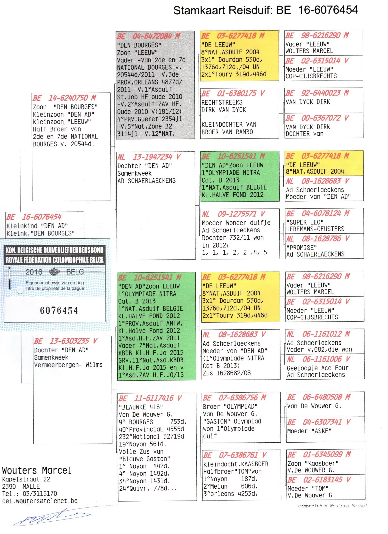 作出子代获得:2011年波治国家赛20544羽亚军7名,奥尔良省赛4877羽3名