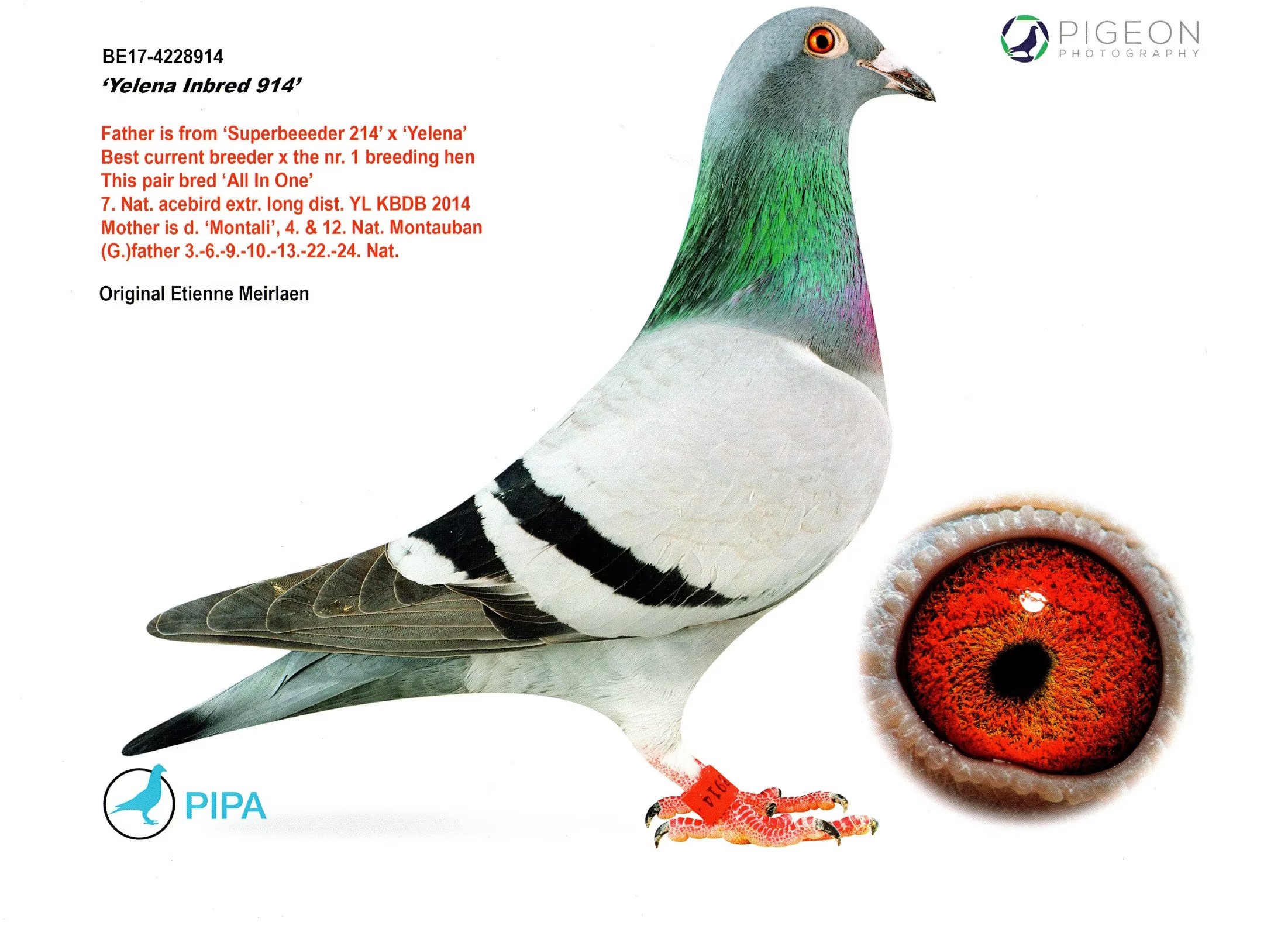 2014年阿让全省冠军/全国一岁鸽3180羽季军/国际8845羽11位