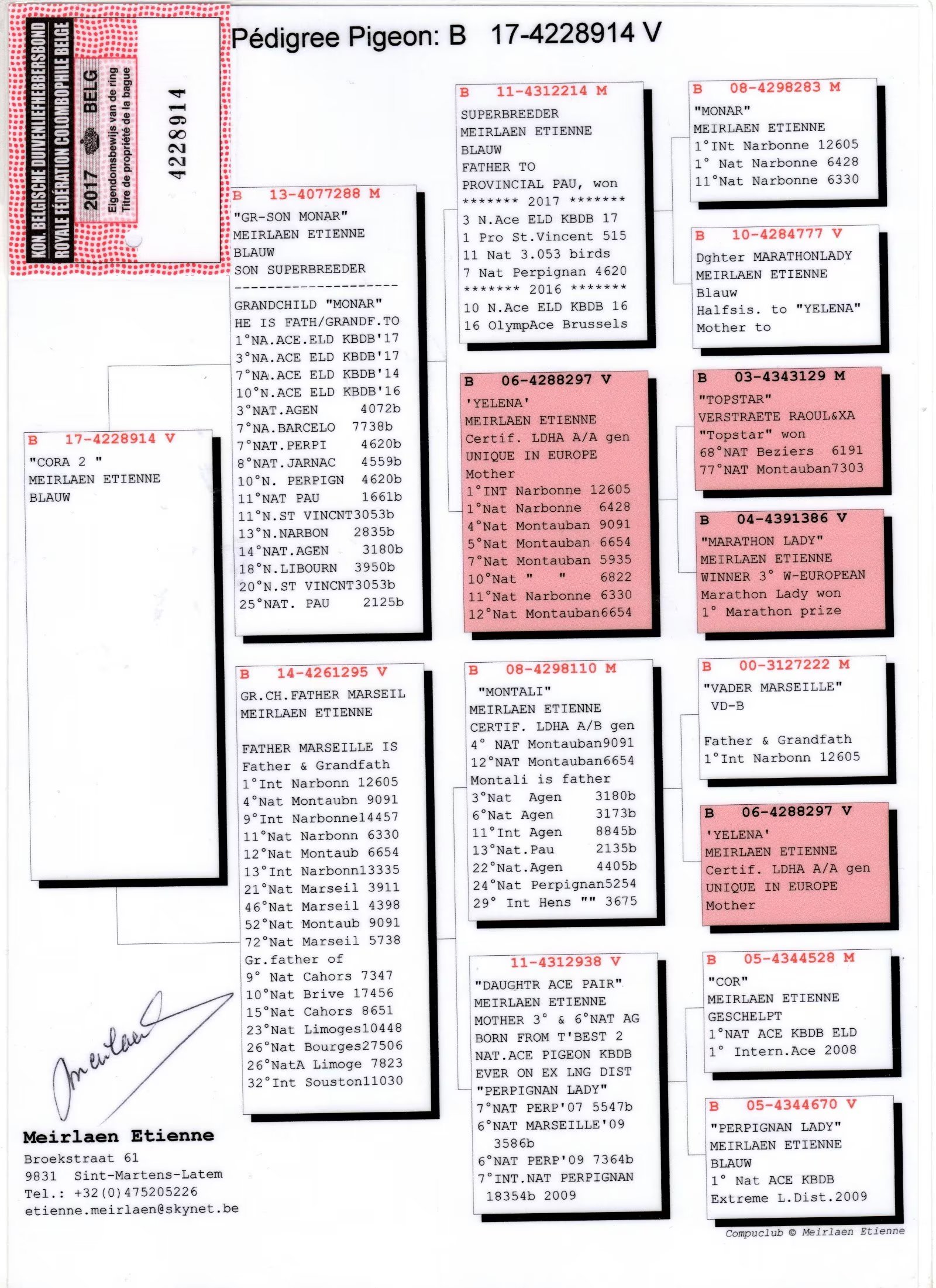 2011年蒙托邦全国9091羽4位2010年蒙托邦全国6654羽12位*作育子孙代获得: