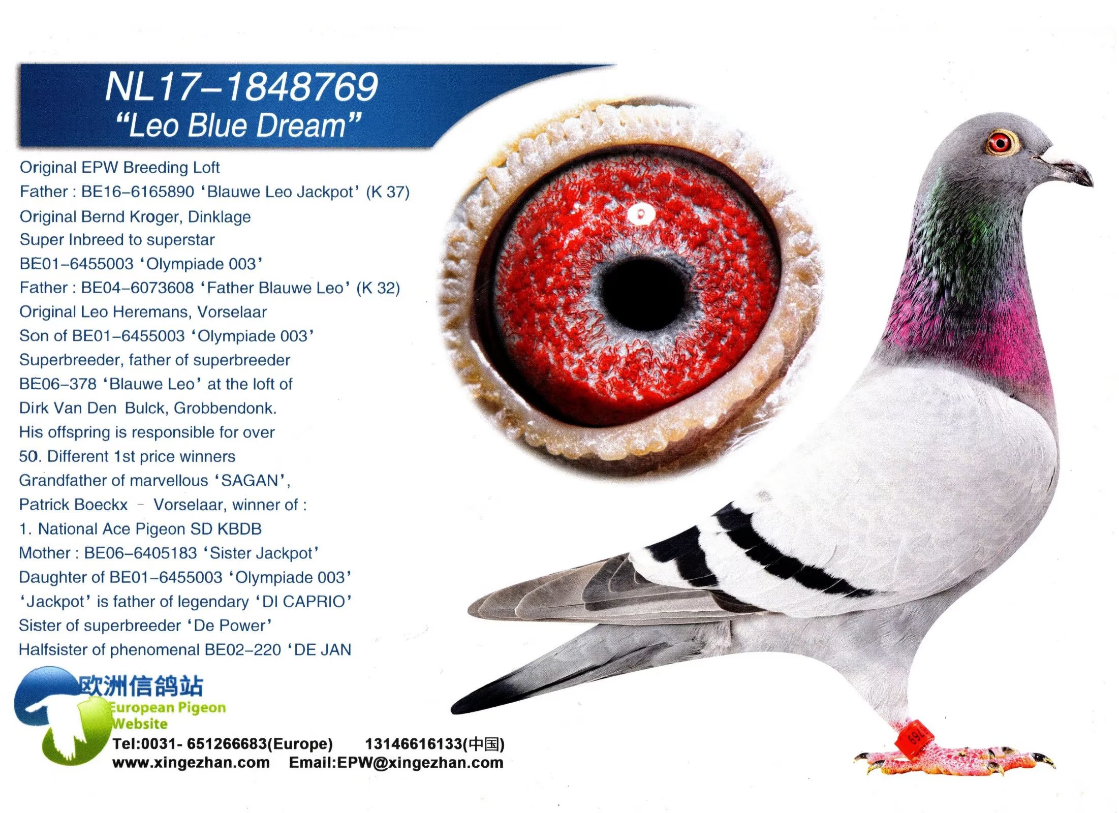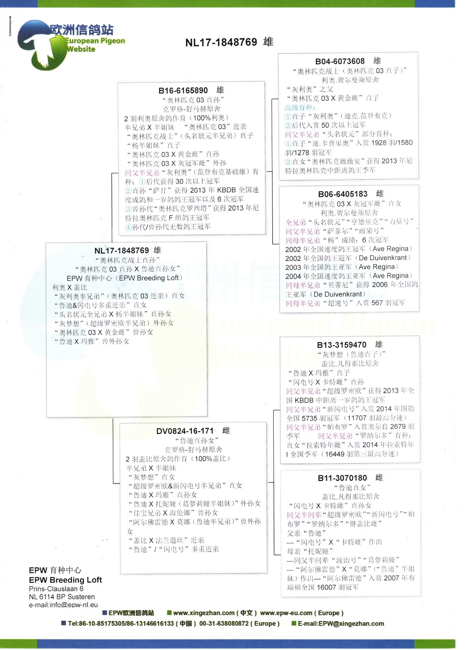 同父半兄弟“新闪电号”入赏2014年图勒全国5735羽冠军(11707羽最高分速)同父半兄弟“帕布罗”入赏奥尔良2679羽季军同父半兄弟“罗纳尔多”育种:直女“拉索特年雌”入赏2014年拉索特年|全国季军(16449羽第三最高分速)