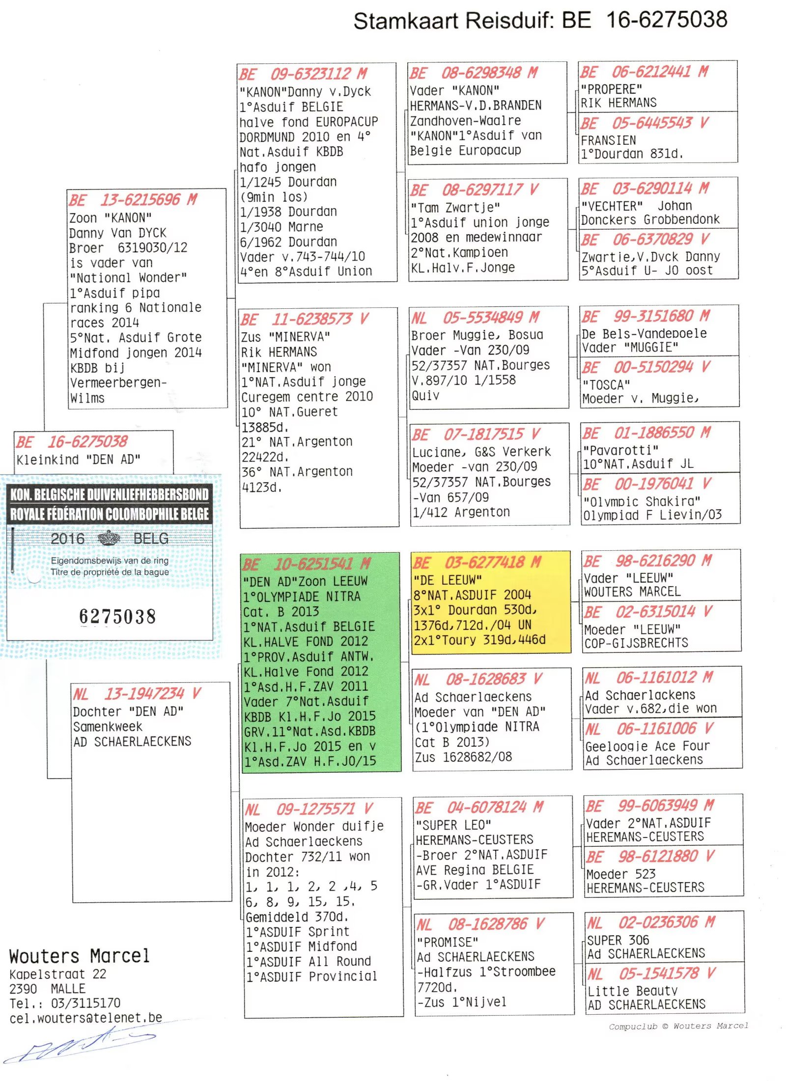 2012年安特卫普小中距离鸽王省赛冠军