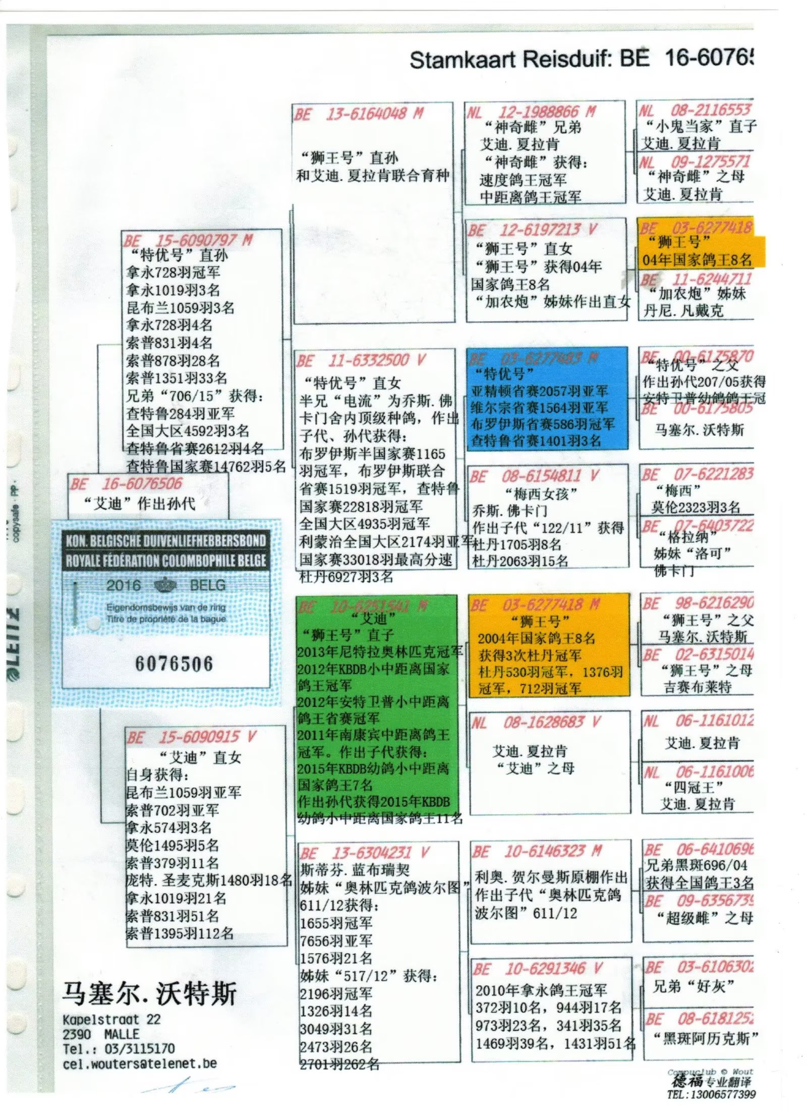 2012年安特卫普小中距离鸽王省赛冠军