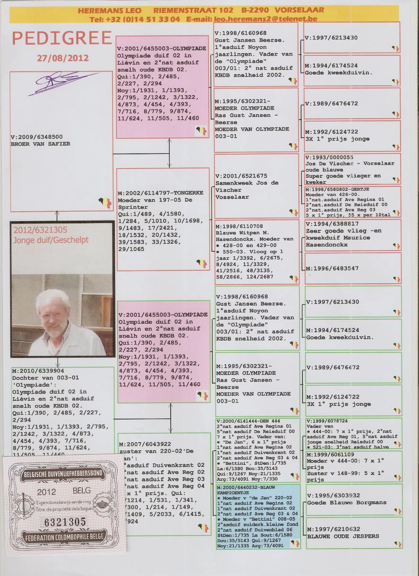2008年安特卫普联合会中长距离鸽王冠军