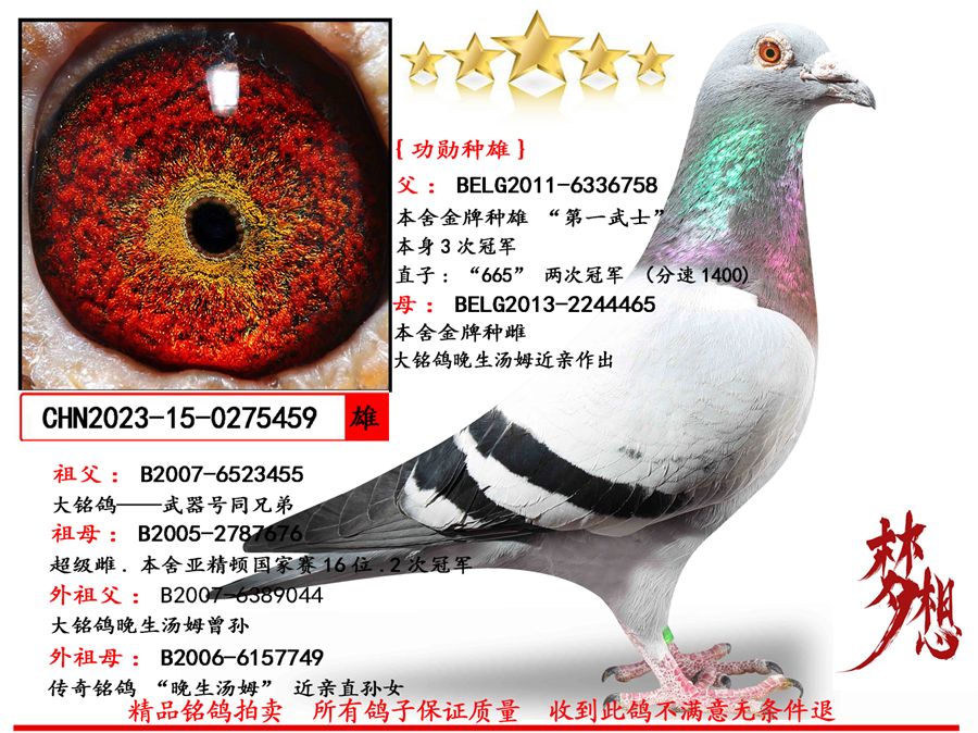 鸽 名: 桑杰士第一武士X桑杰士金牌种雌