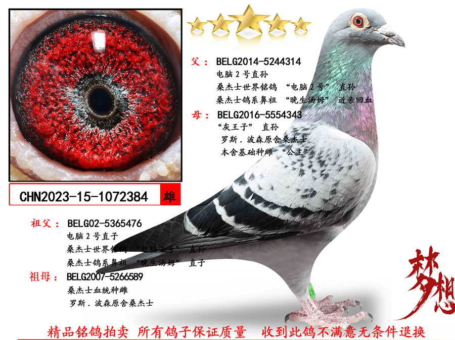 鸽 名: 桑杰士电脑2号X灰王子直孙“超级种雄”