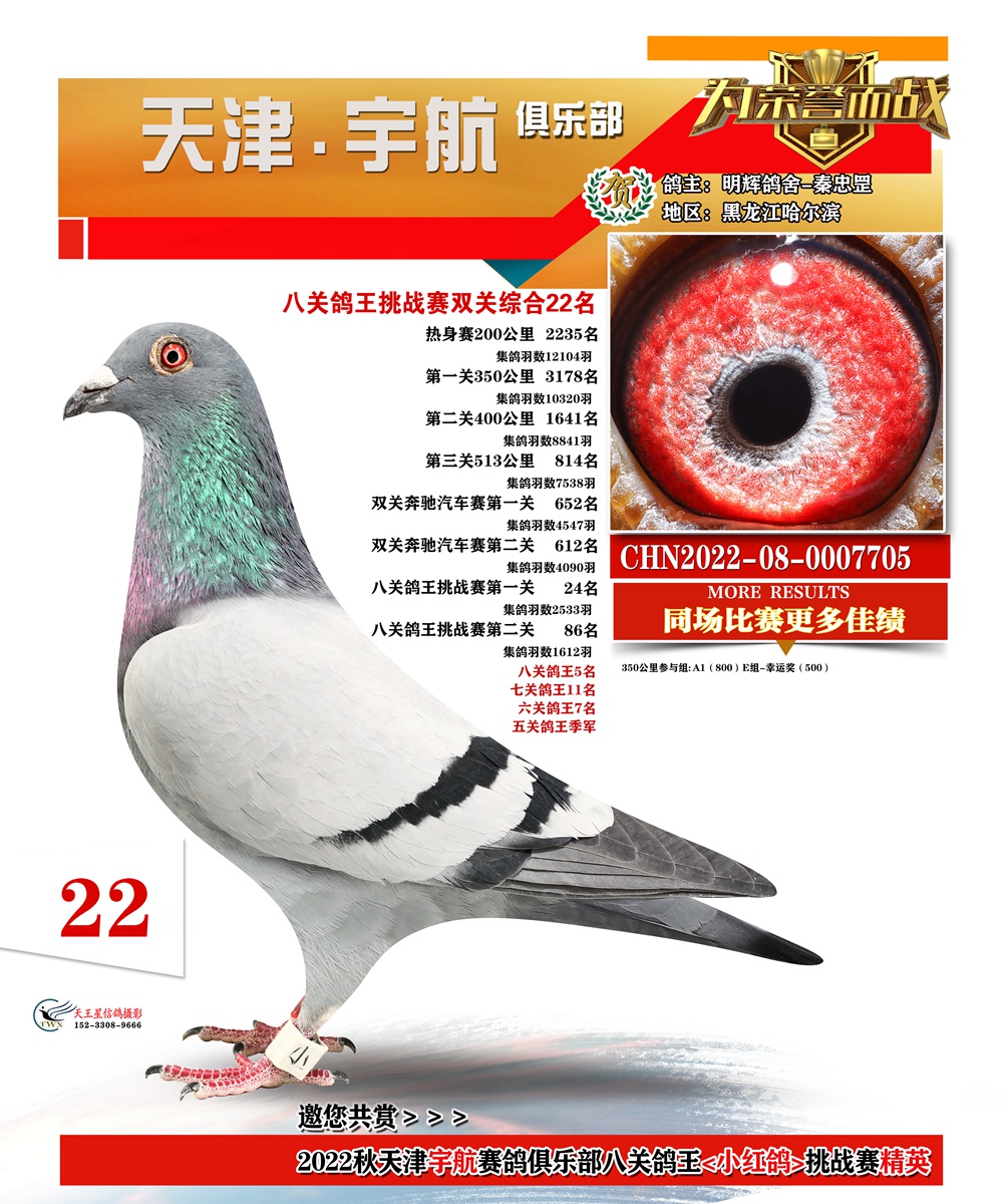 天津宇航八关鸽王挑战赛双关鸽王22名