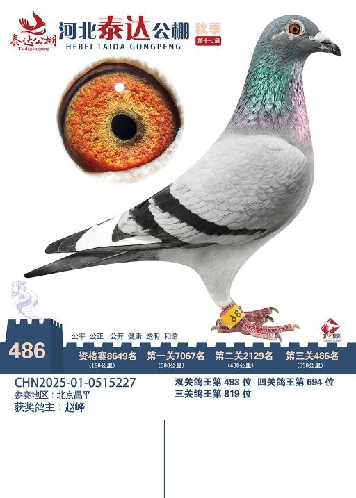 父亲利奥配新福雷迪,母亲24年天津华顺德决赛16名,桑杰士鸽王季军外孙女