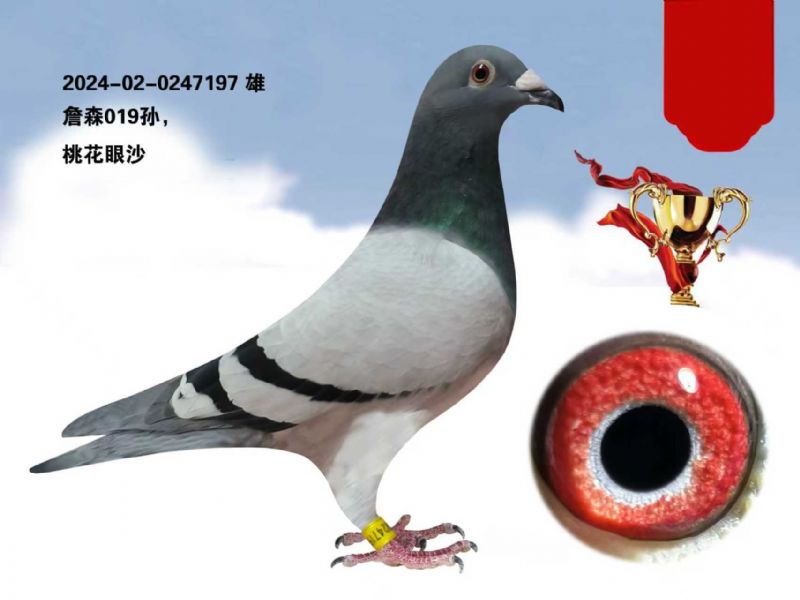 詹森019孙,公,灰,桃花眼沙,高辈份种鸽值出,2024-02-0247197,手感肌肉好,血统纯正,真实拍照,喜欢的来,包邮,不讲价。